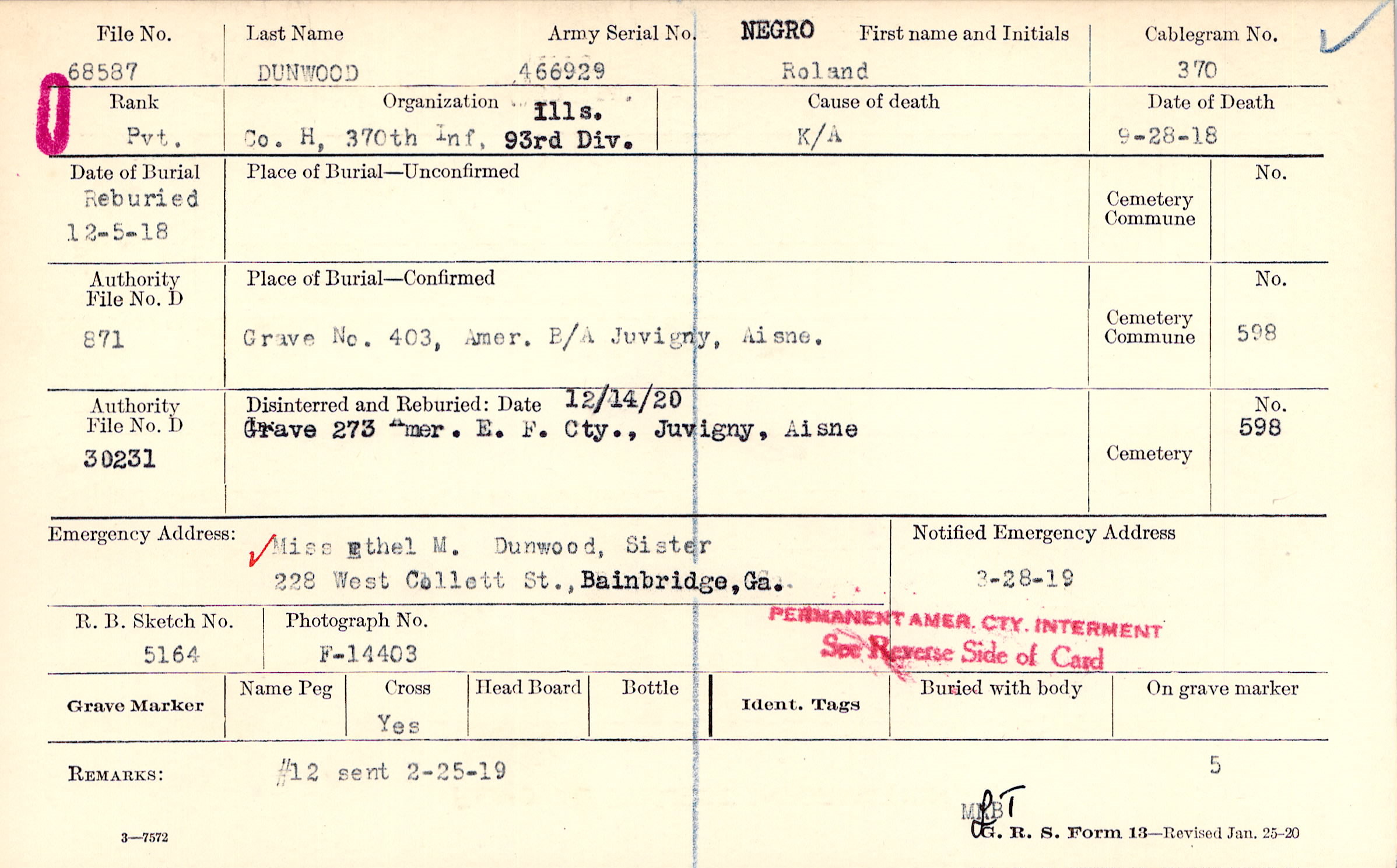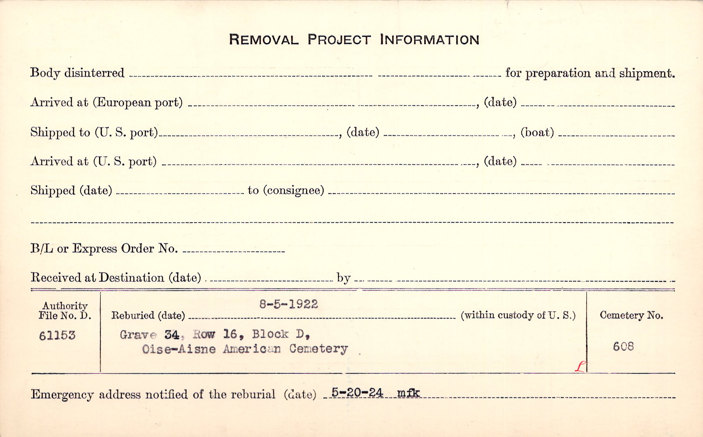 Grave 403, Amer. B/A Juvigny, Aisne.