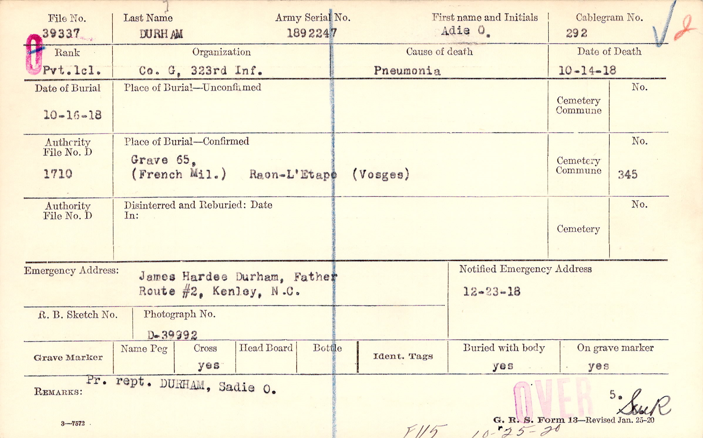 James Hardee Durham, Father, Route #2, Kenley, N.C.