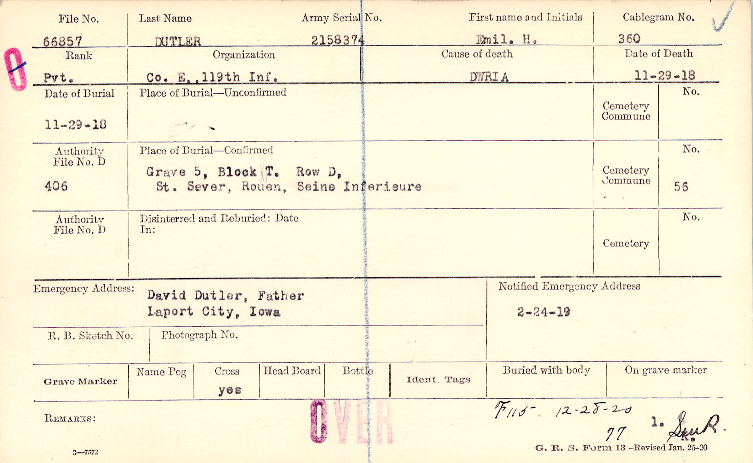 Grave 5, Block T, Row D, St. Sever, Rouen, Seine Inferieure