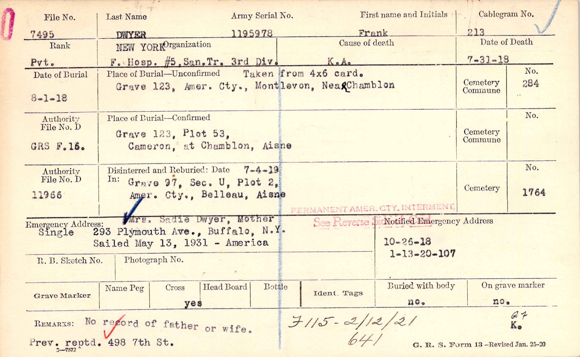 10/26/1918, Form 107: 1/13/1920