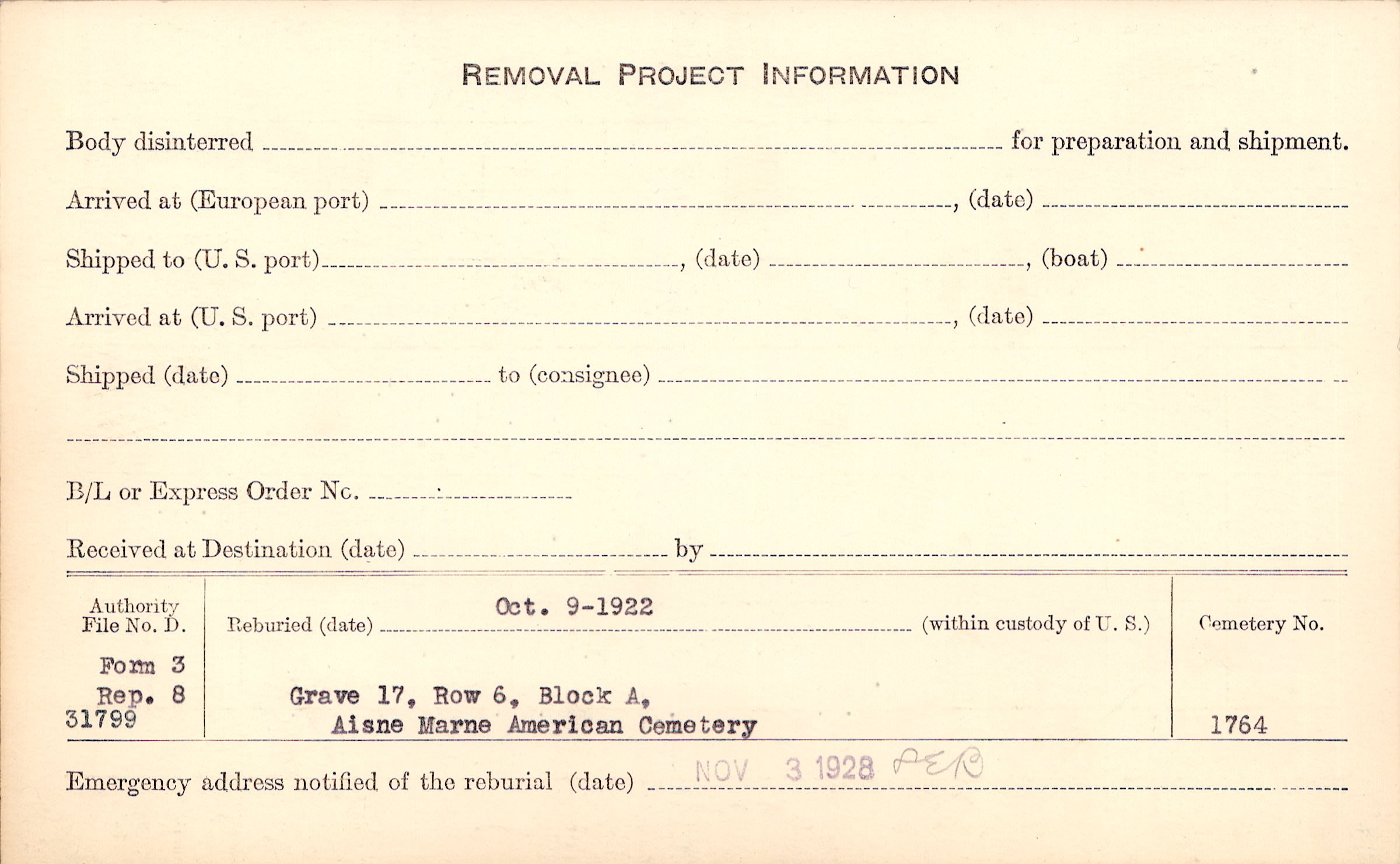 | Permanent Burial in Foreign Cemetery |