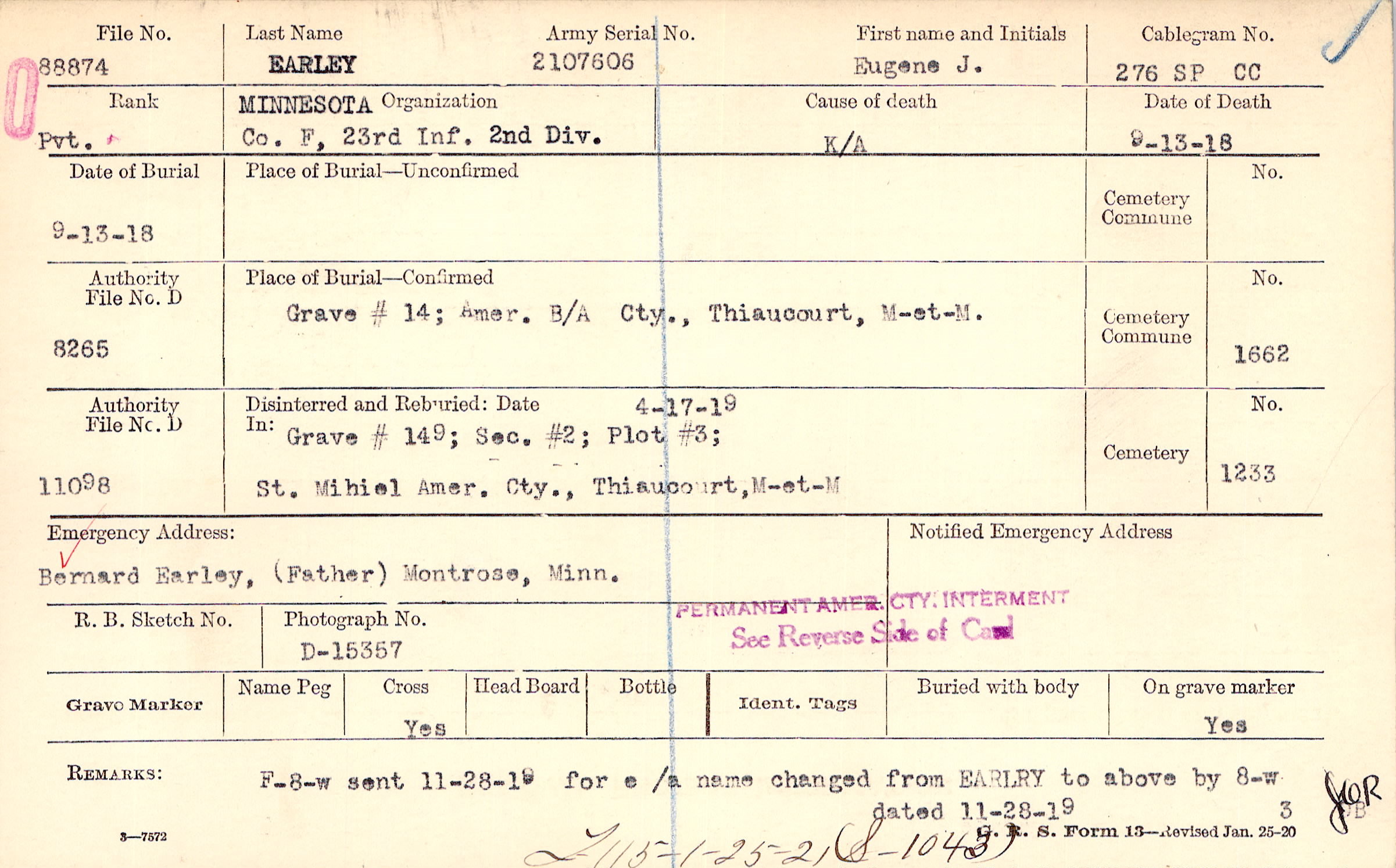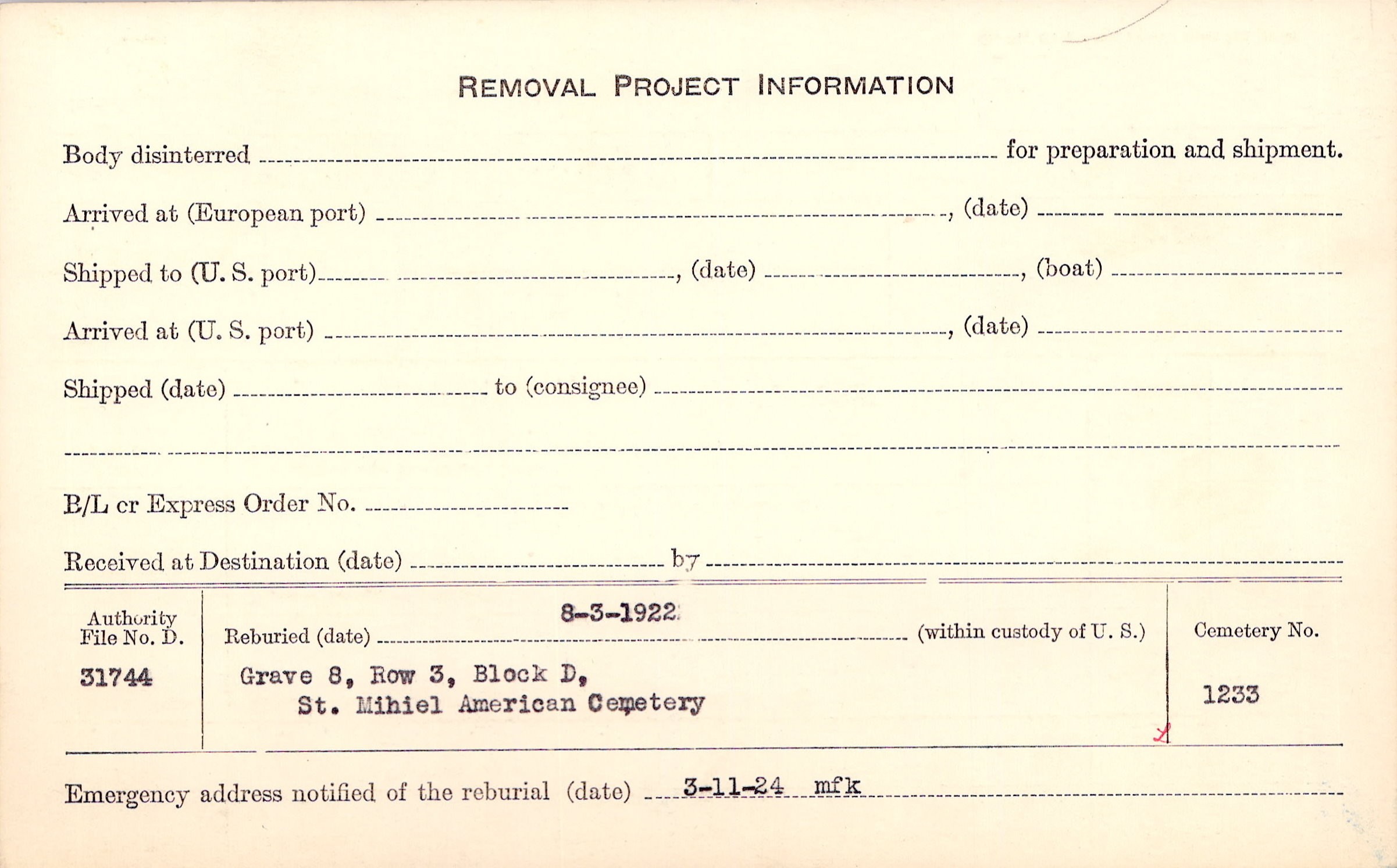 Grave 149, Section 2, Plot 3, St. Mihiel American Cemetery, Thiaucourt, Meurthe-et-Moselle