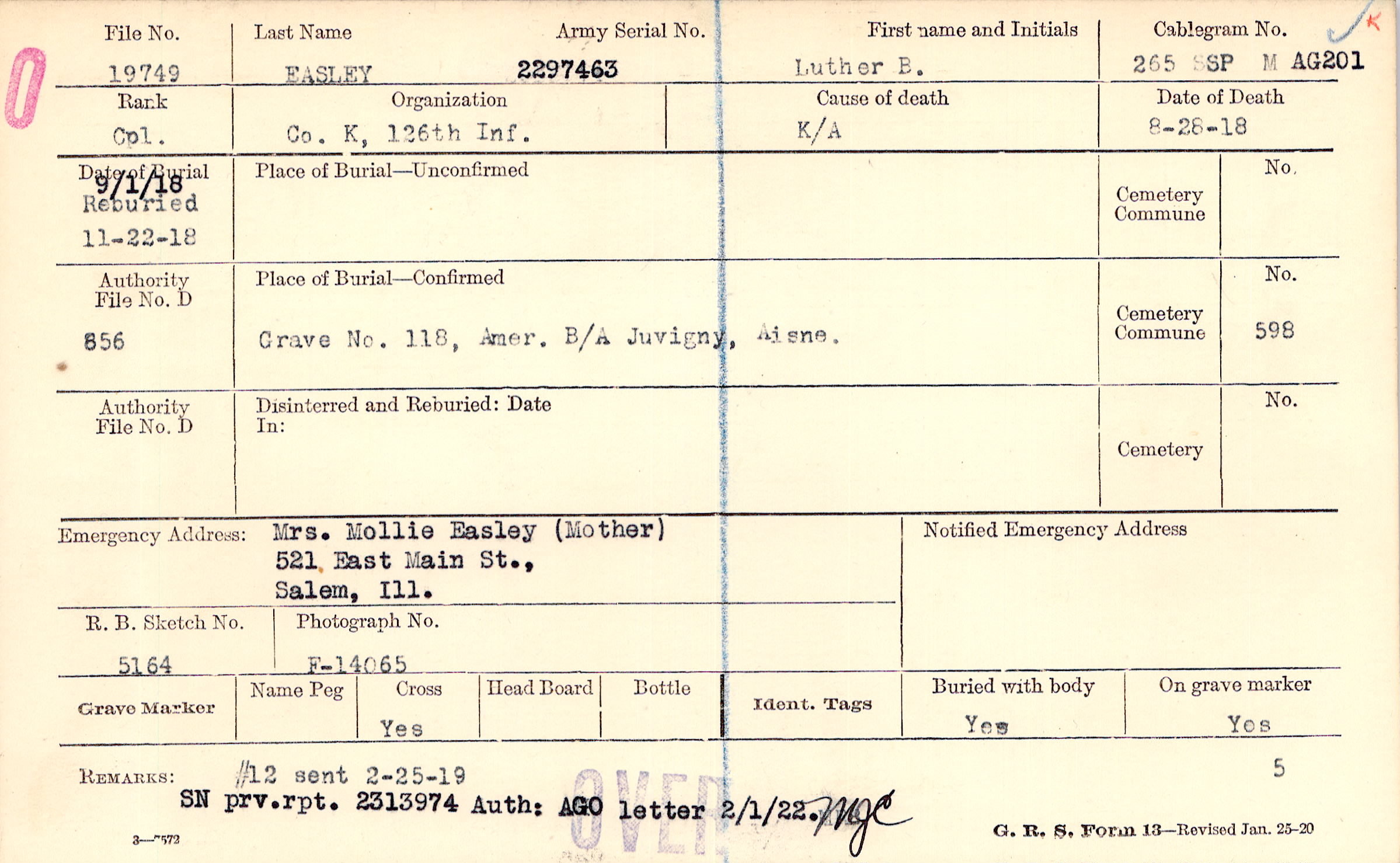 Grave 118, Amer. B/A, Juvigny, Aisne.