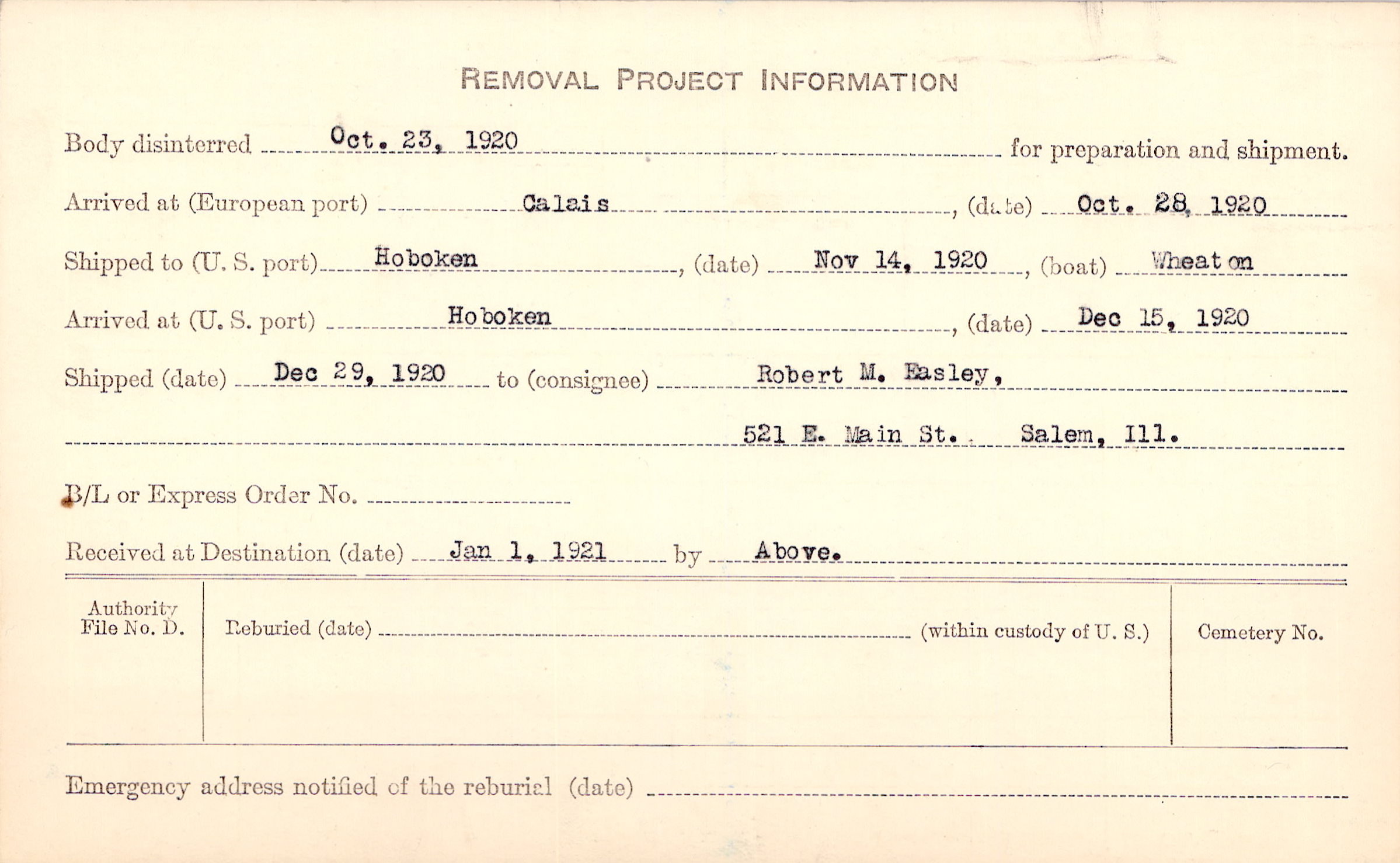 to Robert M. Easley, 521 E. Main St. Salem, Ill.