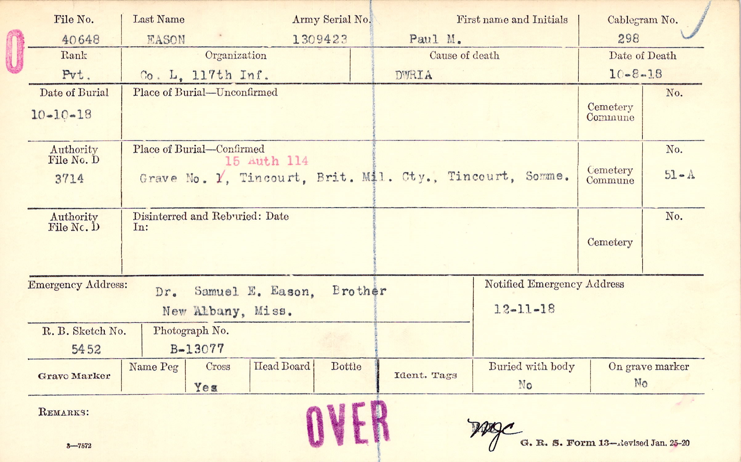Grave 15 (Auth 114), Tincourt, Brit. Mil. Cty., Tincourt, Somme.