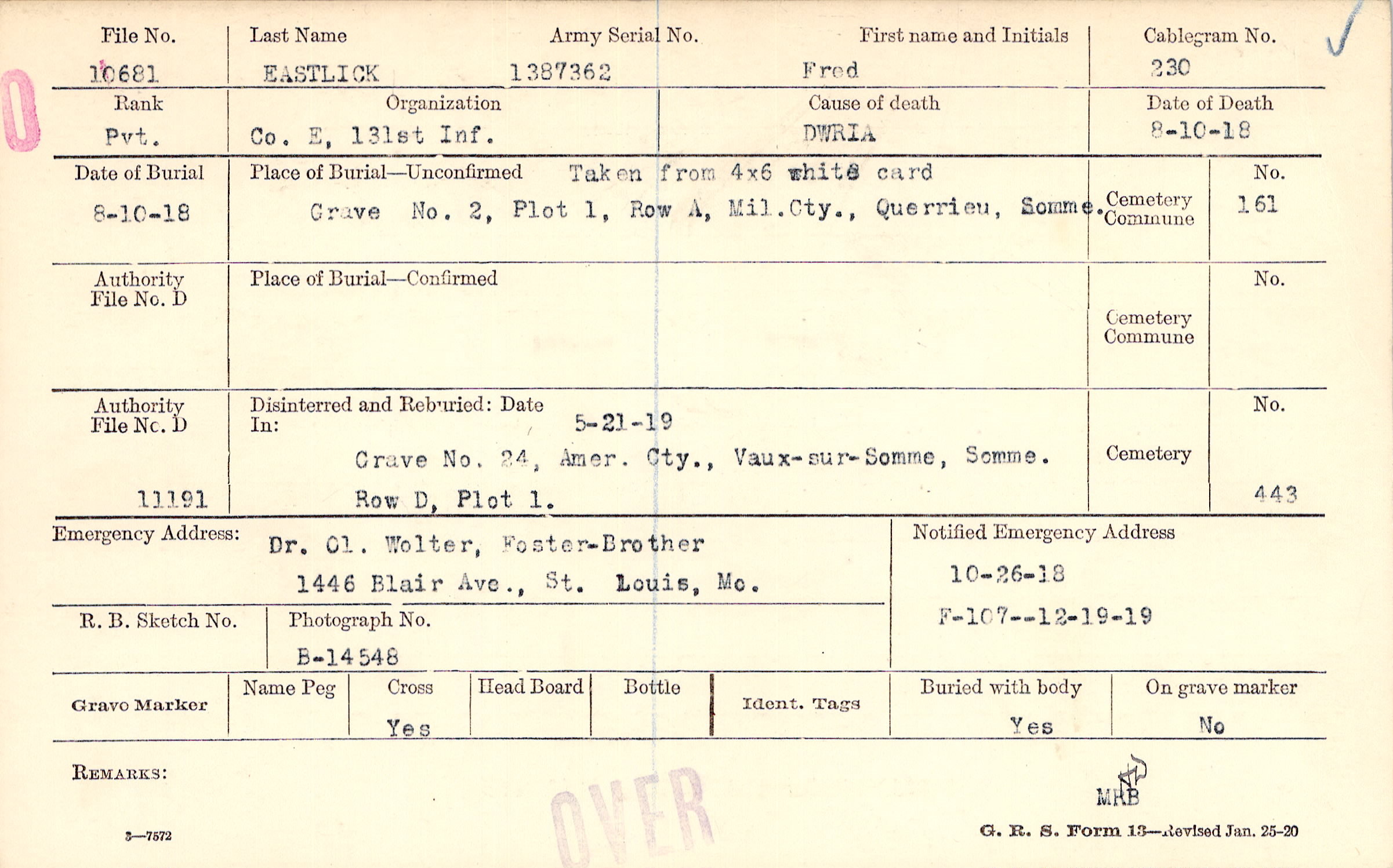 10/26/1918, Form 107: 12/19/1919