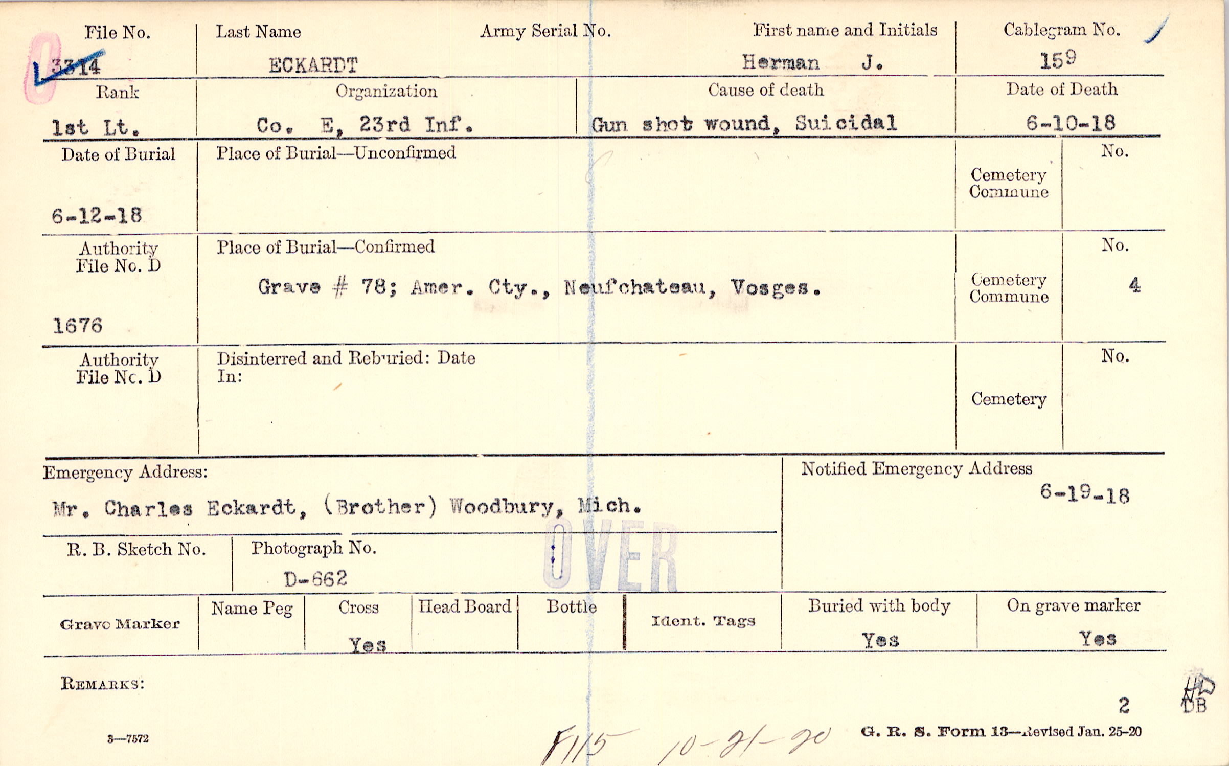 Grave # 78, Amer. Cty., Neufchateau, Vosges.