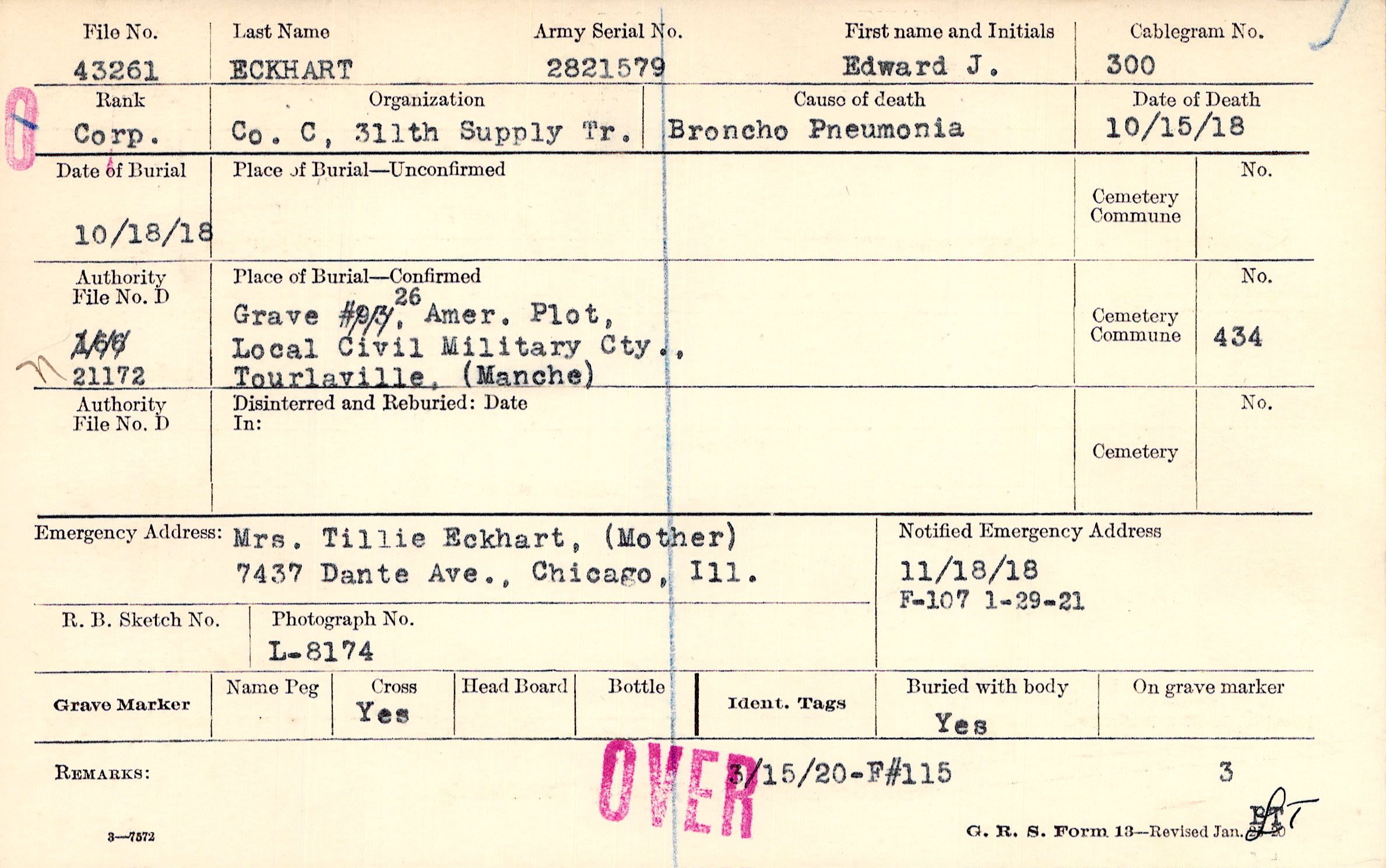 Mrs. Tillie Eckhart, (Mother), 7437 Dante Ave., Chicago, Ill.
