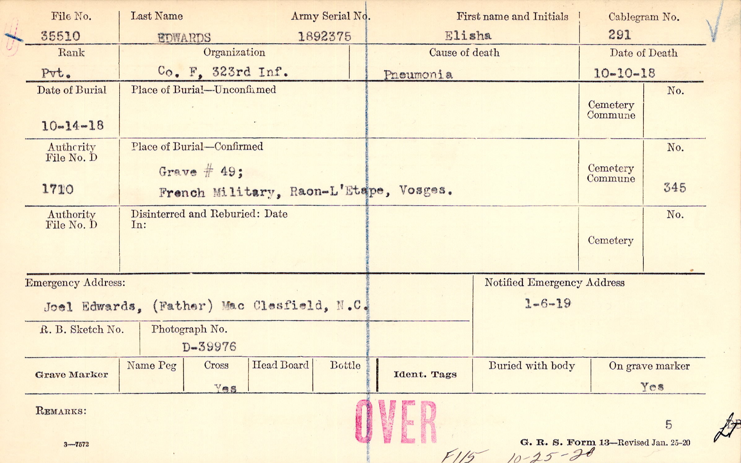 Grave # 49,French Military, Raon-L'Etape, Vosges.