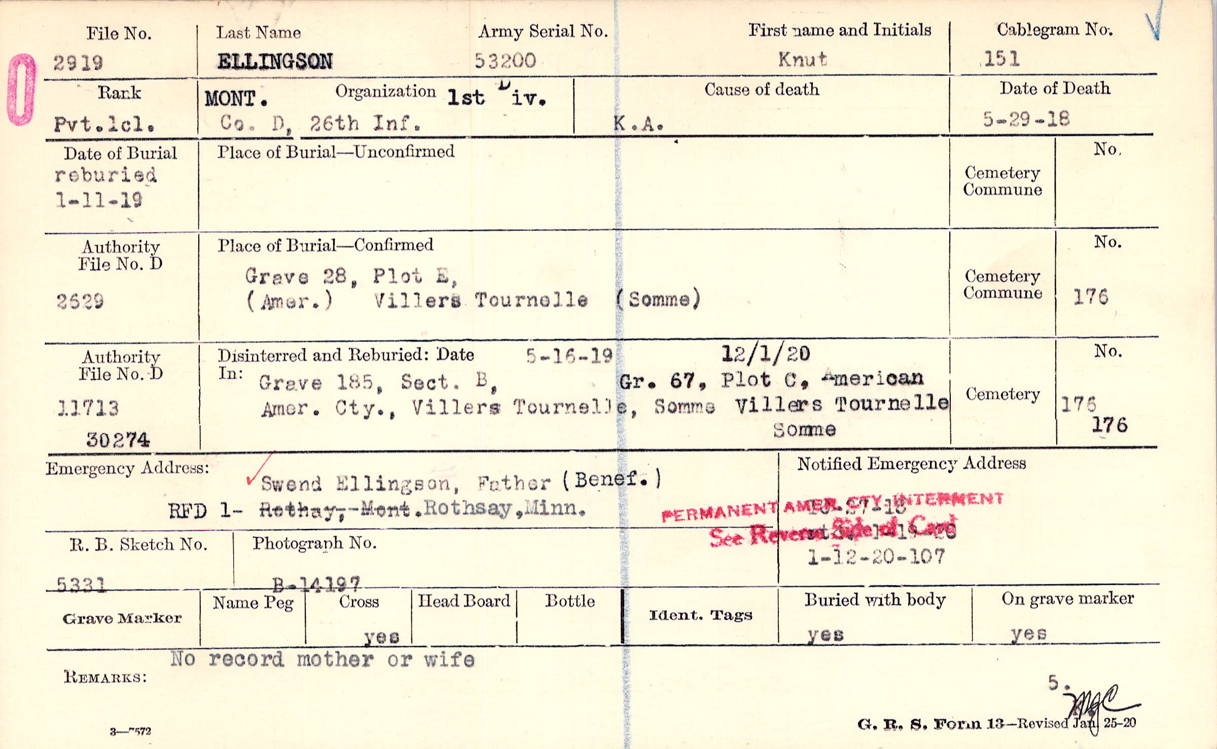 Reburied 1/11/1919