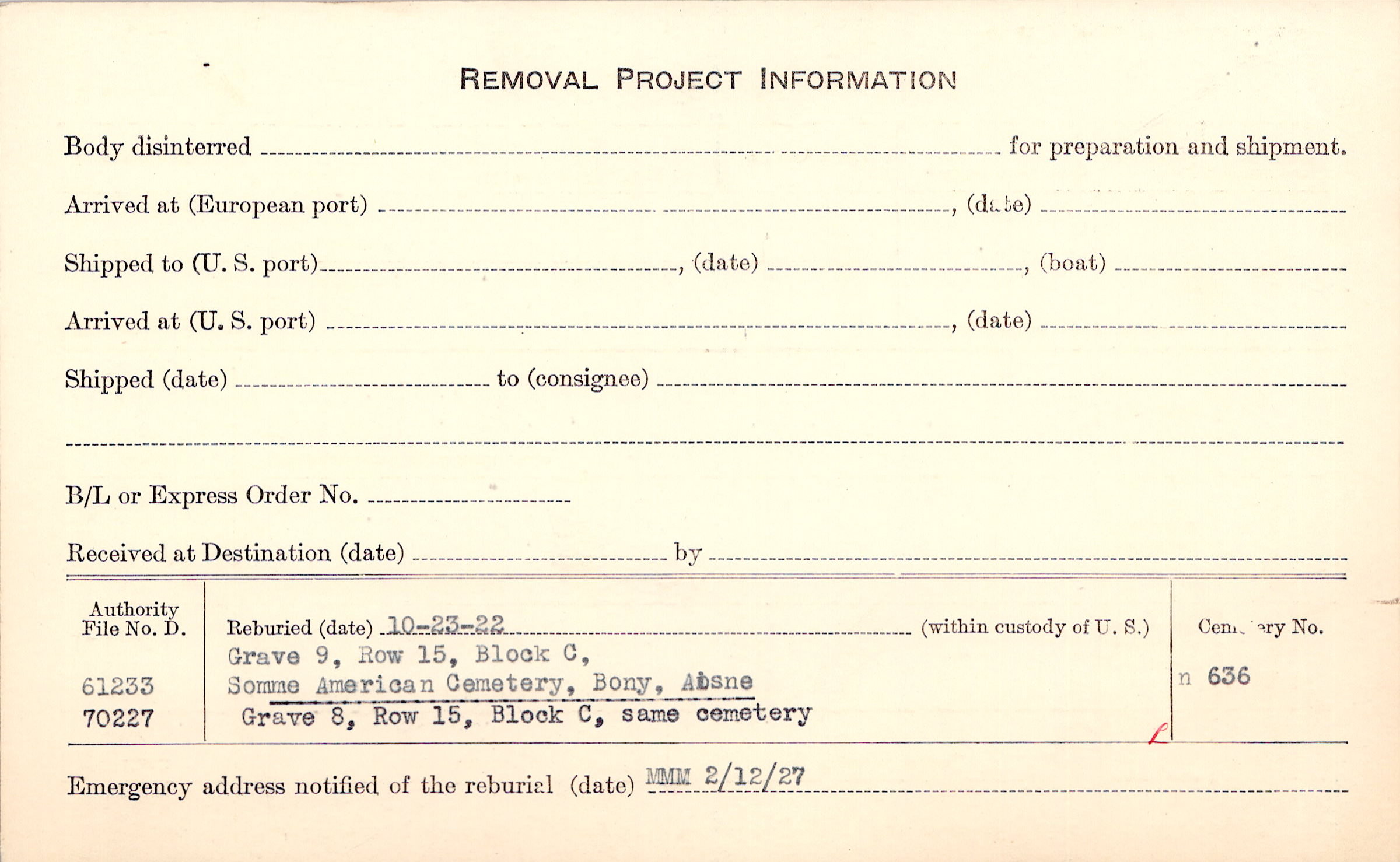 Prior Burial in Foreign Cemetery |