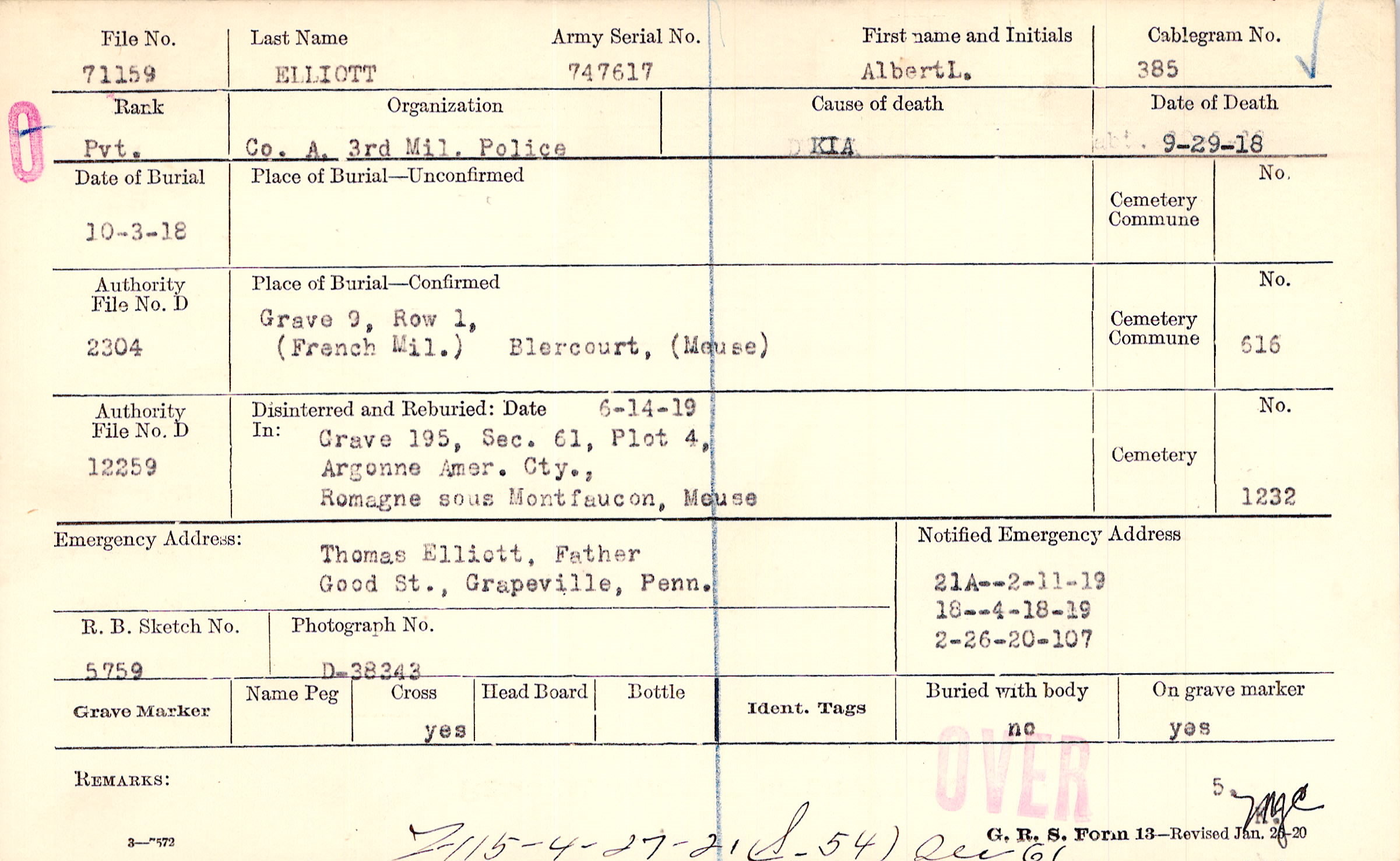 Thomas Elliott, Father, Good St., Grapeville, Penn.