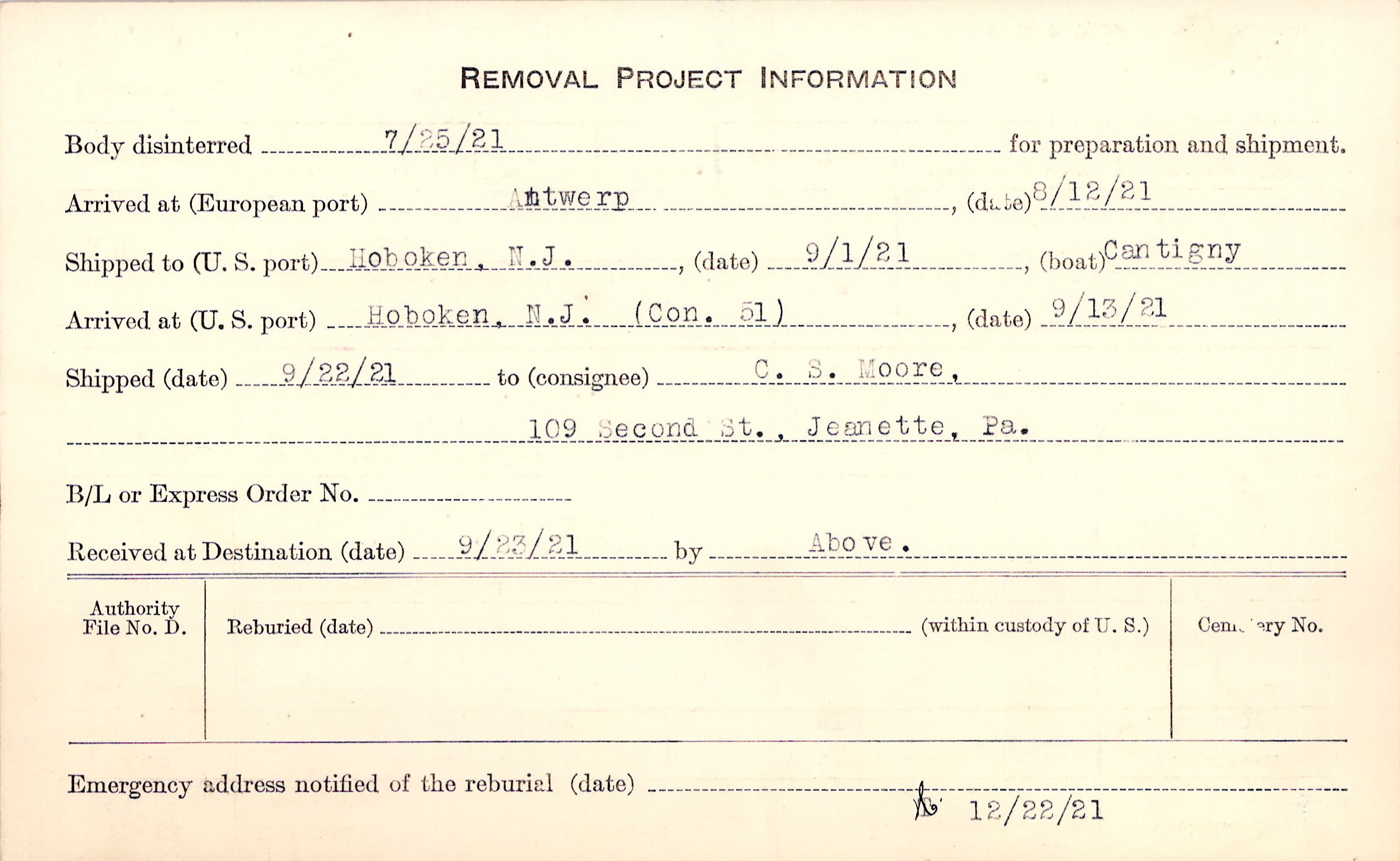 to C. S. Moore, 109 Second St., Jeanette, Pa.