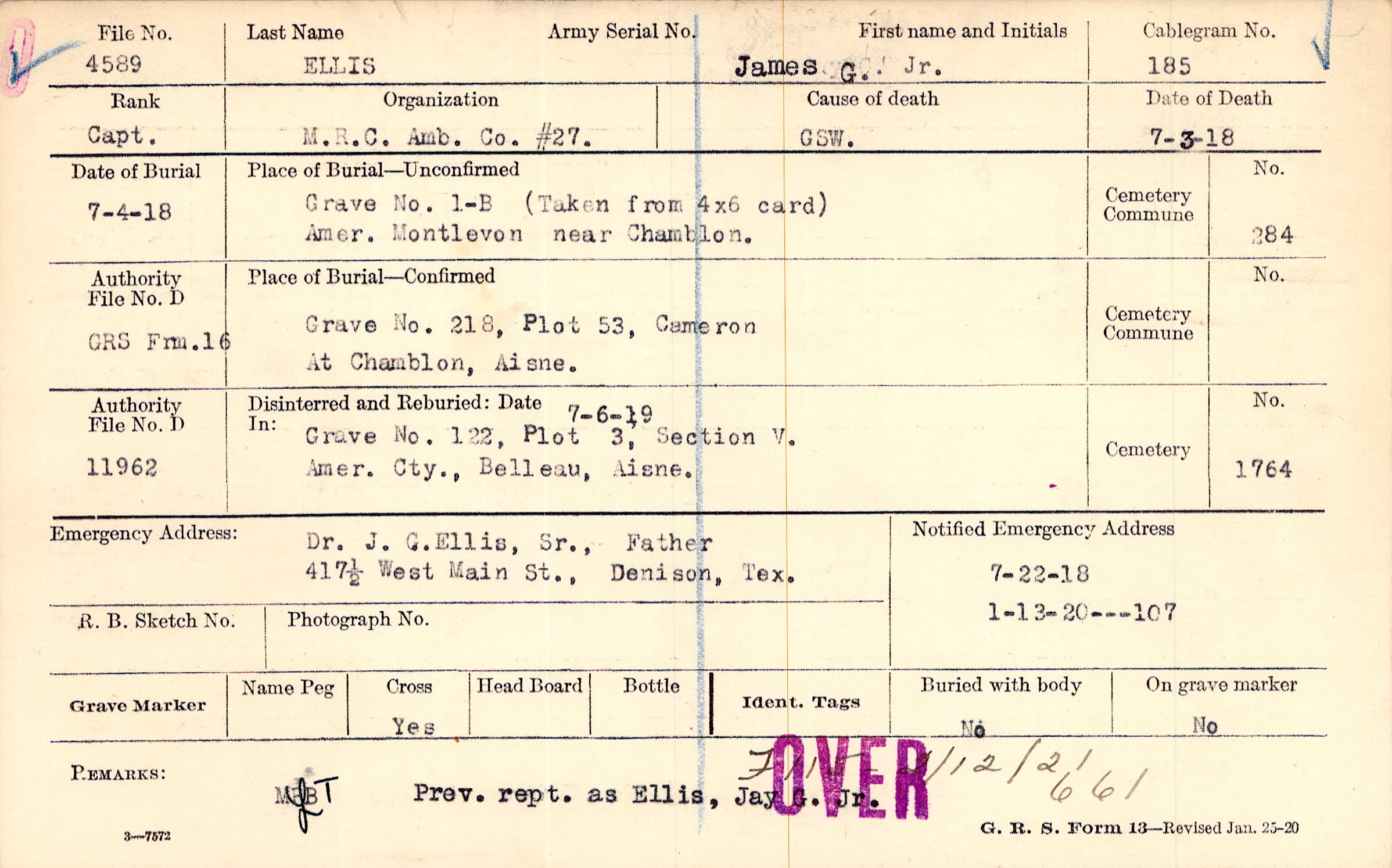 Grave No. 1-B, Amer., Montlevon near Chamblon.