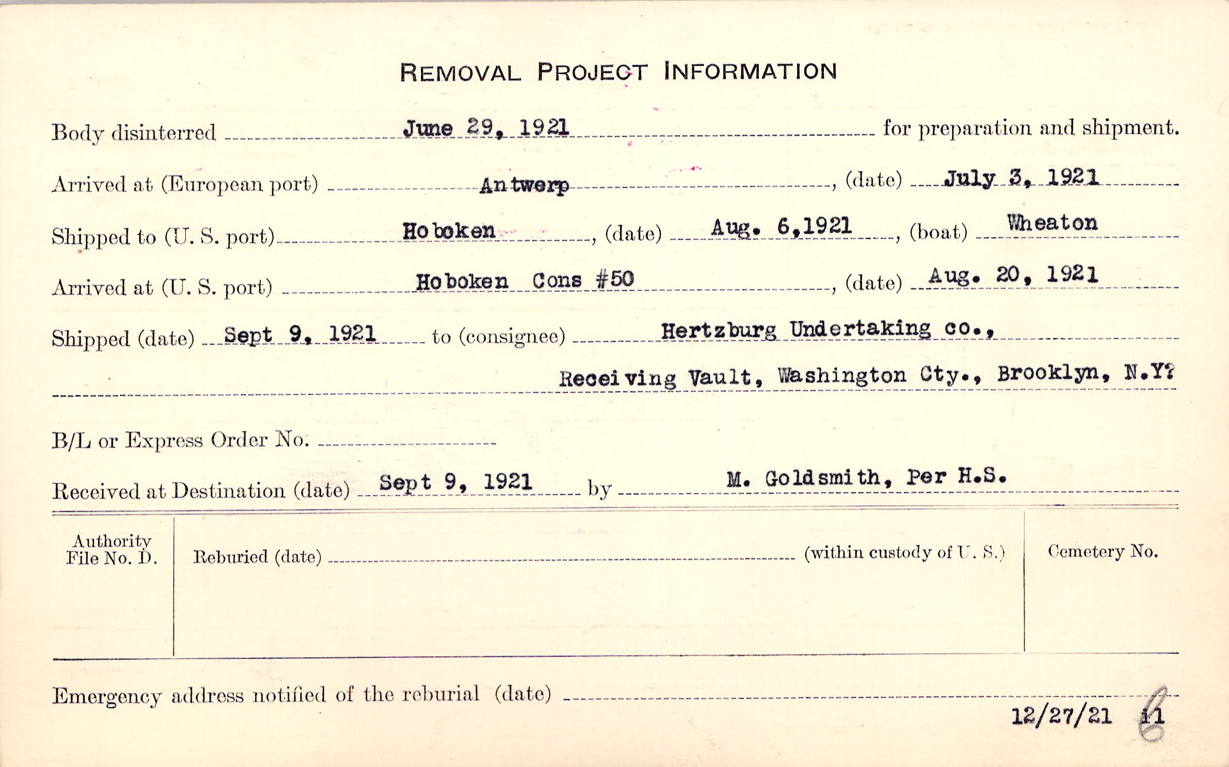 to Hertzburg Undertaking co., Receiving Vault, Washington Cty., Brooklyn, N.Y?