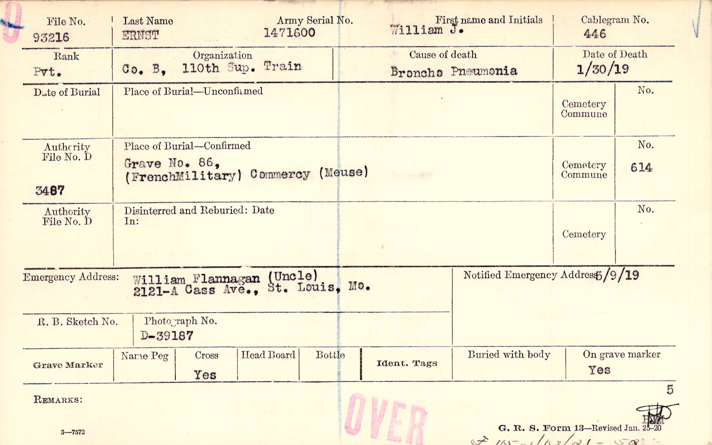 Grave 86, French Military, Commercy, Meuse