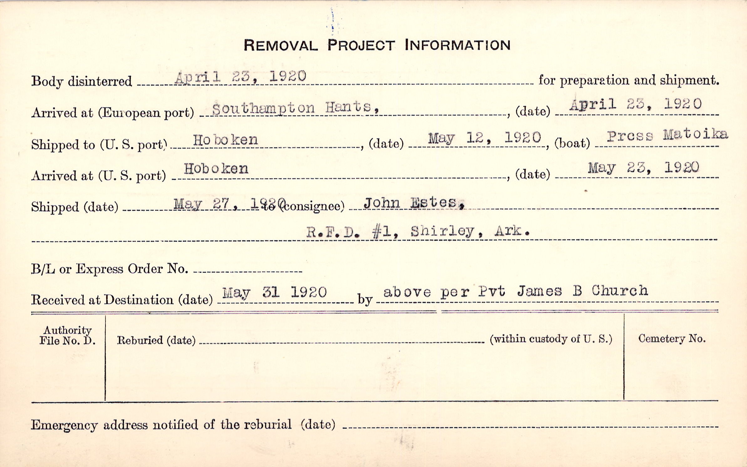 to John Estes, R. F. D. #1, Shirley, Ark.