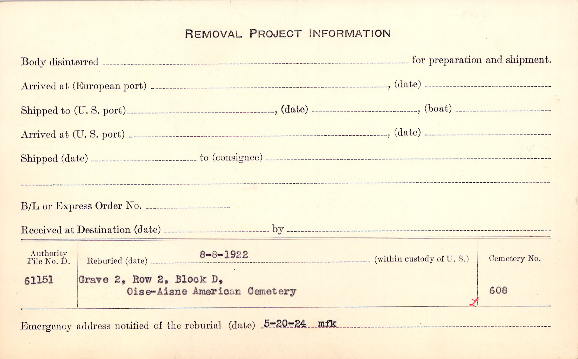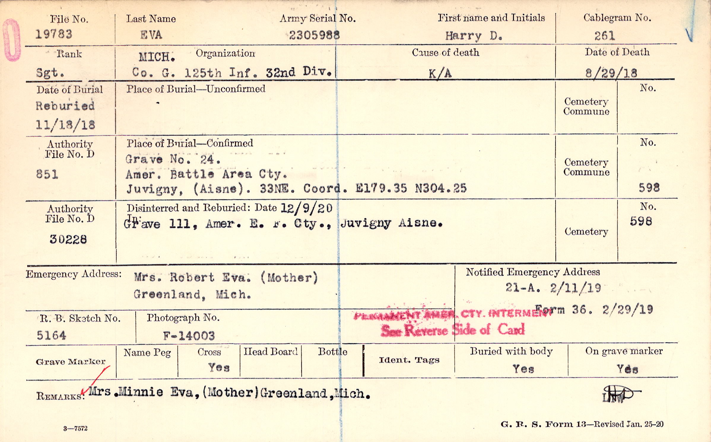 Grave 24., Amer. Battle Area Cty., Juvigny, Aisne., 33NE