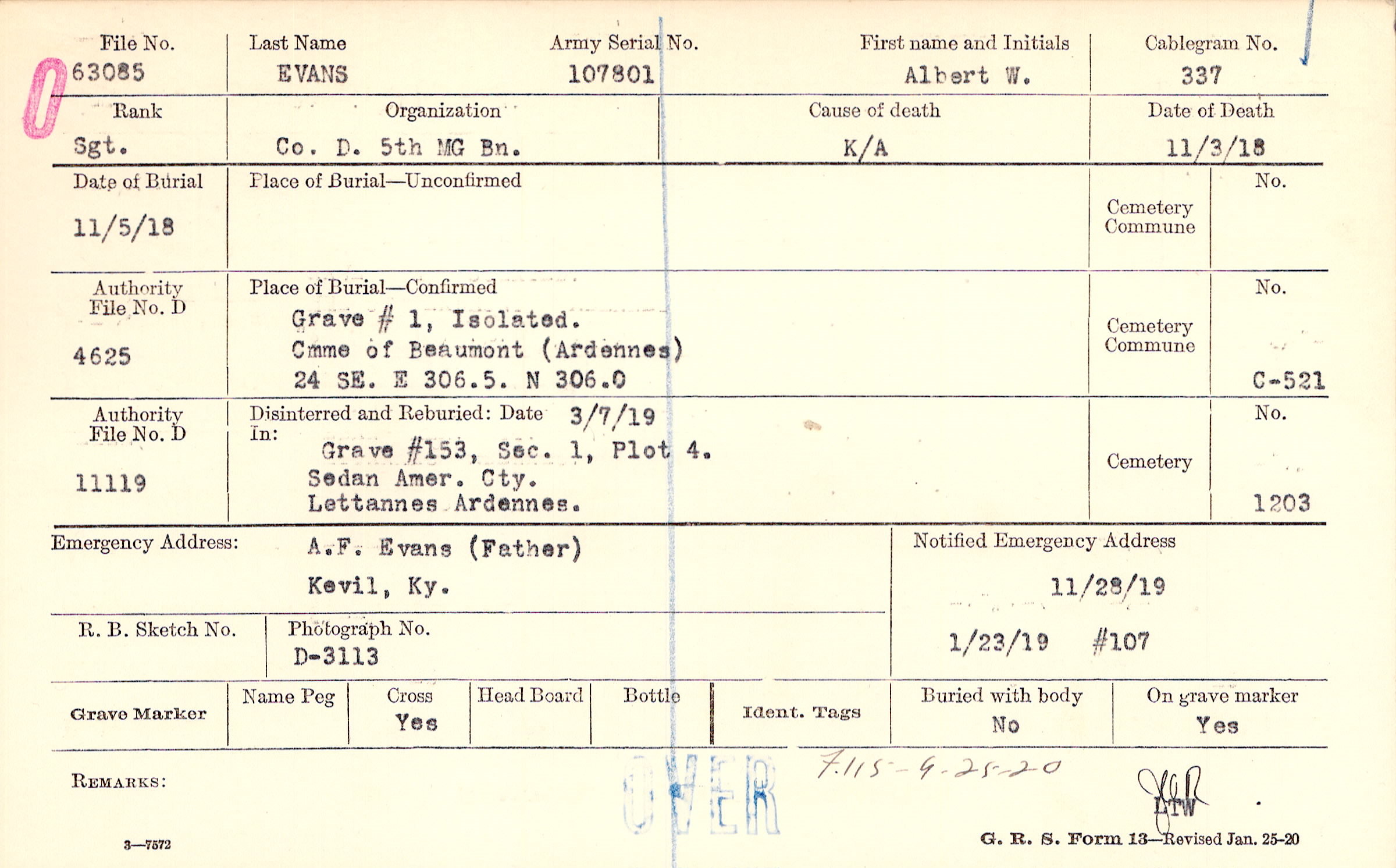 Grave 153, Section 1, Plot 4, Sedan American Cemetery, Latanne, Ardennes