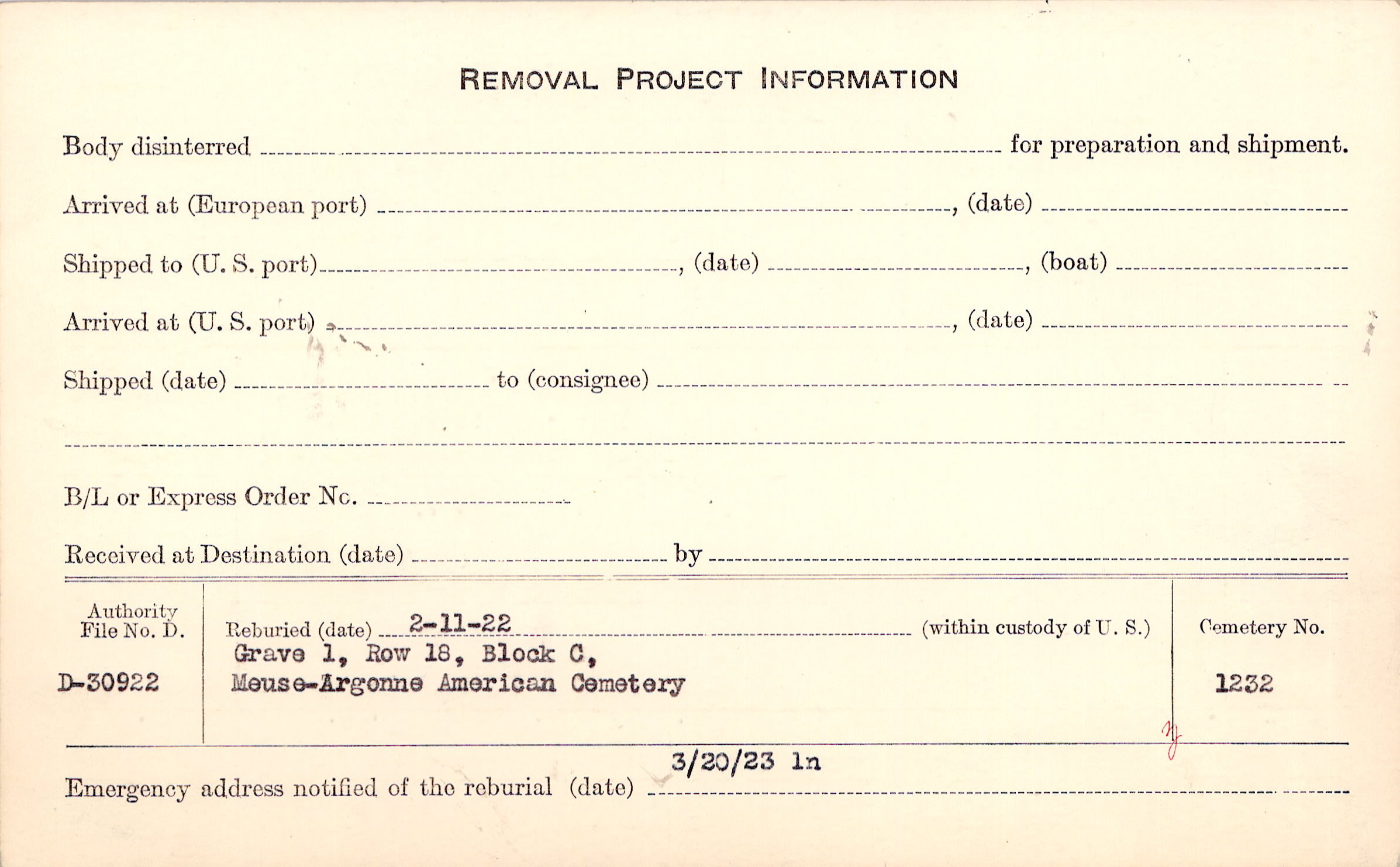 | Permanent Burial in Foreign Cemetery |