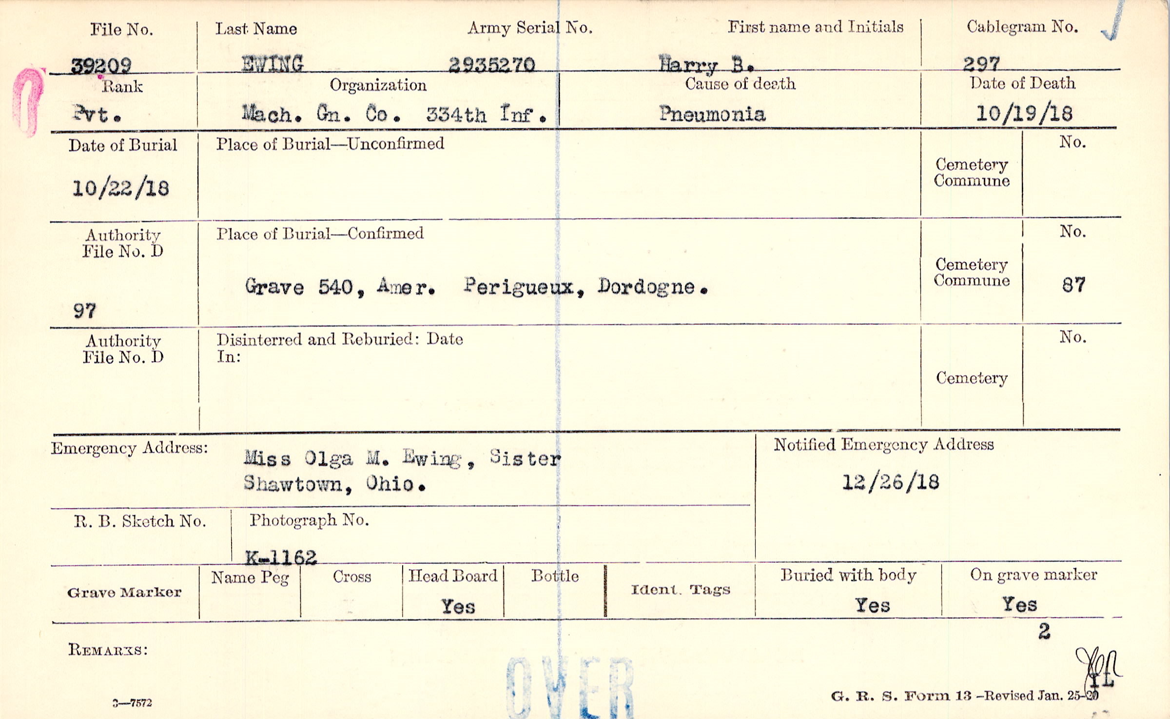Miss Olga M. Ewing, Sister, Shawtown, Ohio.