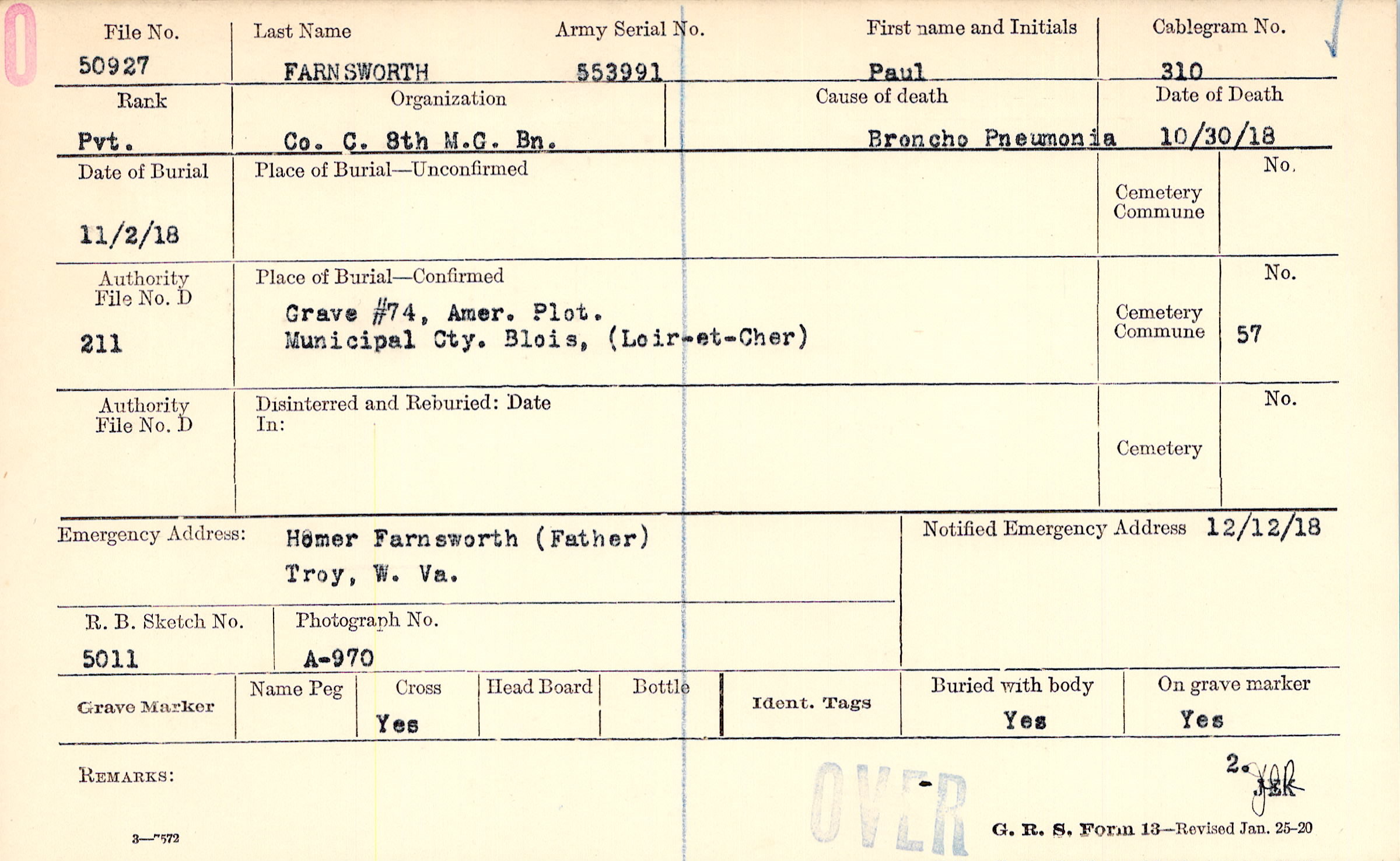 Grave #74, Amer. Plot, Municipal Cty., Blois, Loir-et-Cher