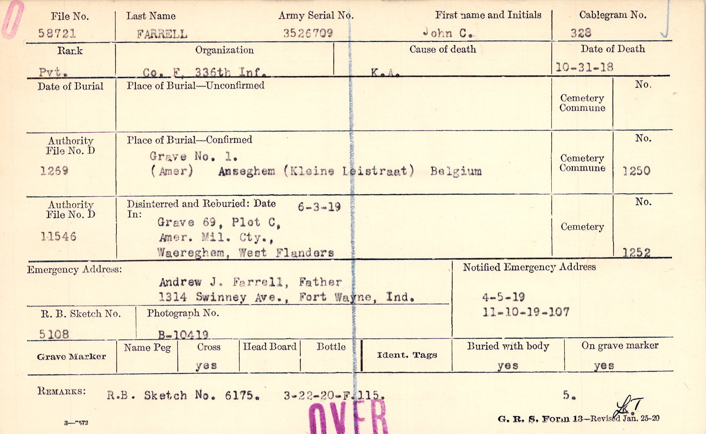 Andrew J. Farrell, Father, 1314 Swinney Ave., Fort Wayne, Ind.