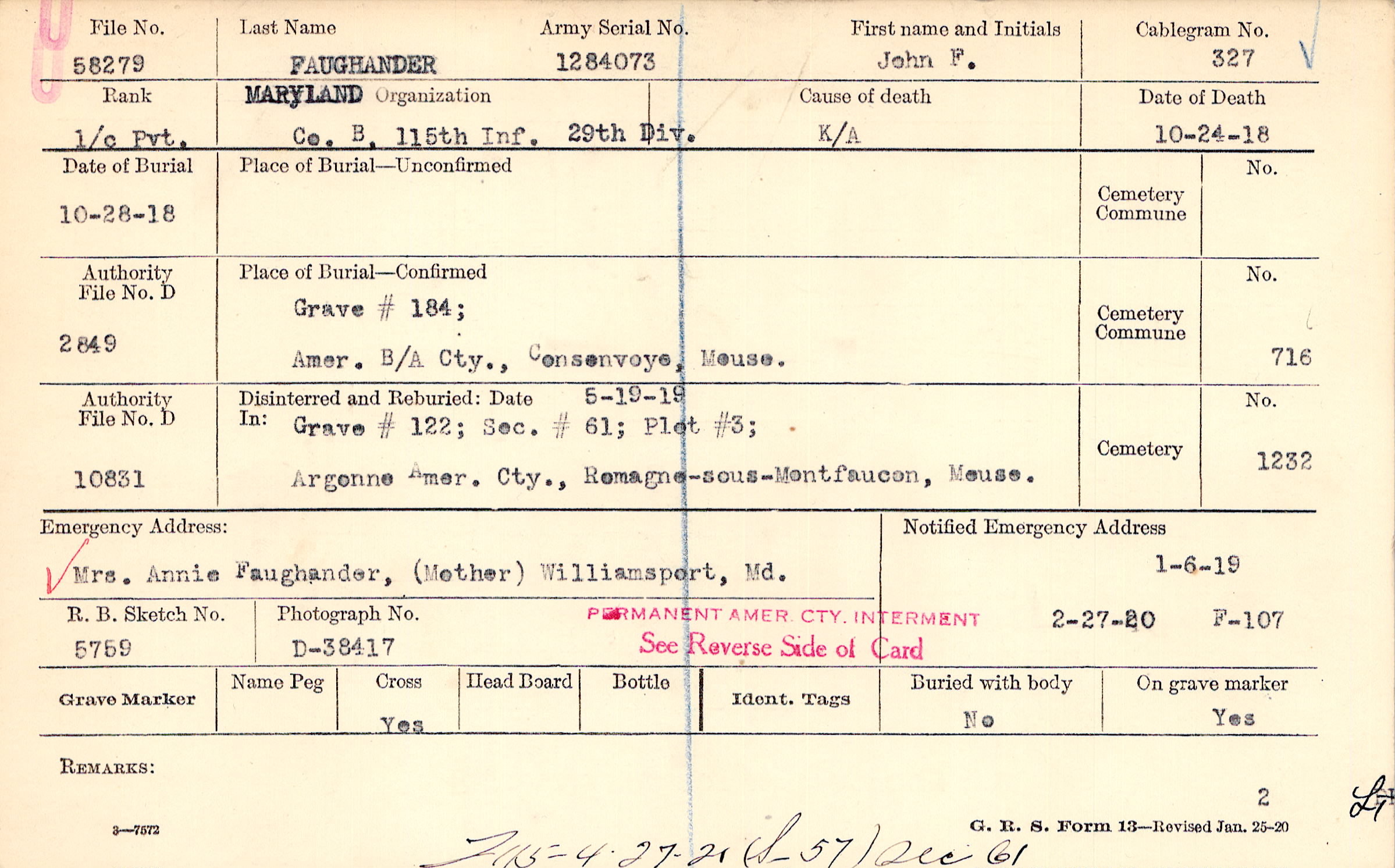 Mrs. Annie Faughander, (Mother), Williamsport, Md.