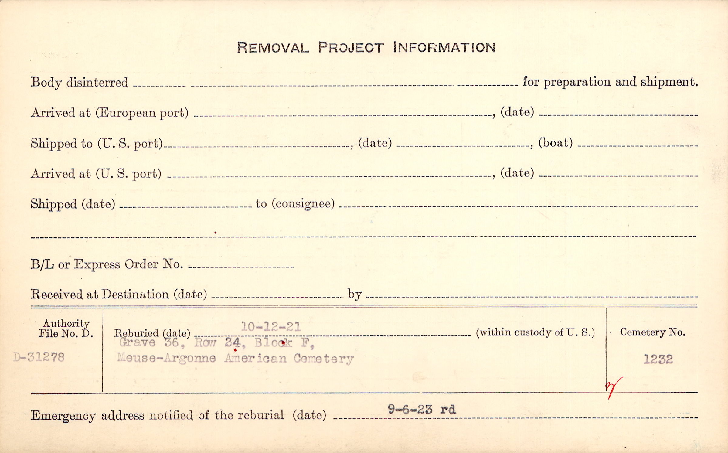 Grave 122, Section 61, Plot 3, Argonne American Cemetery, Romagne-sous-Montfaucon, Meuse