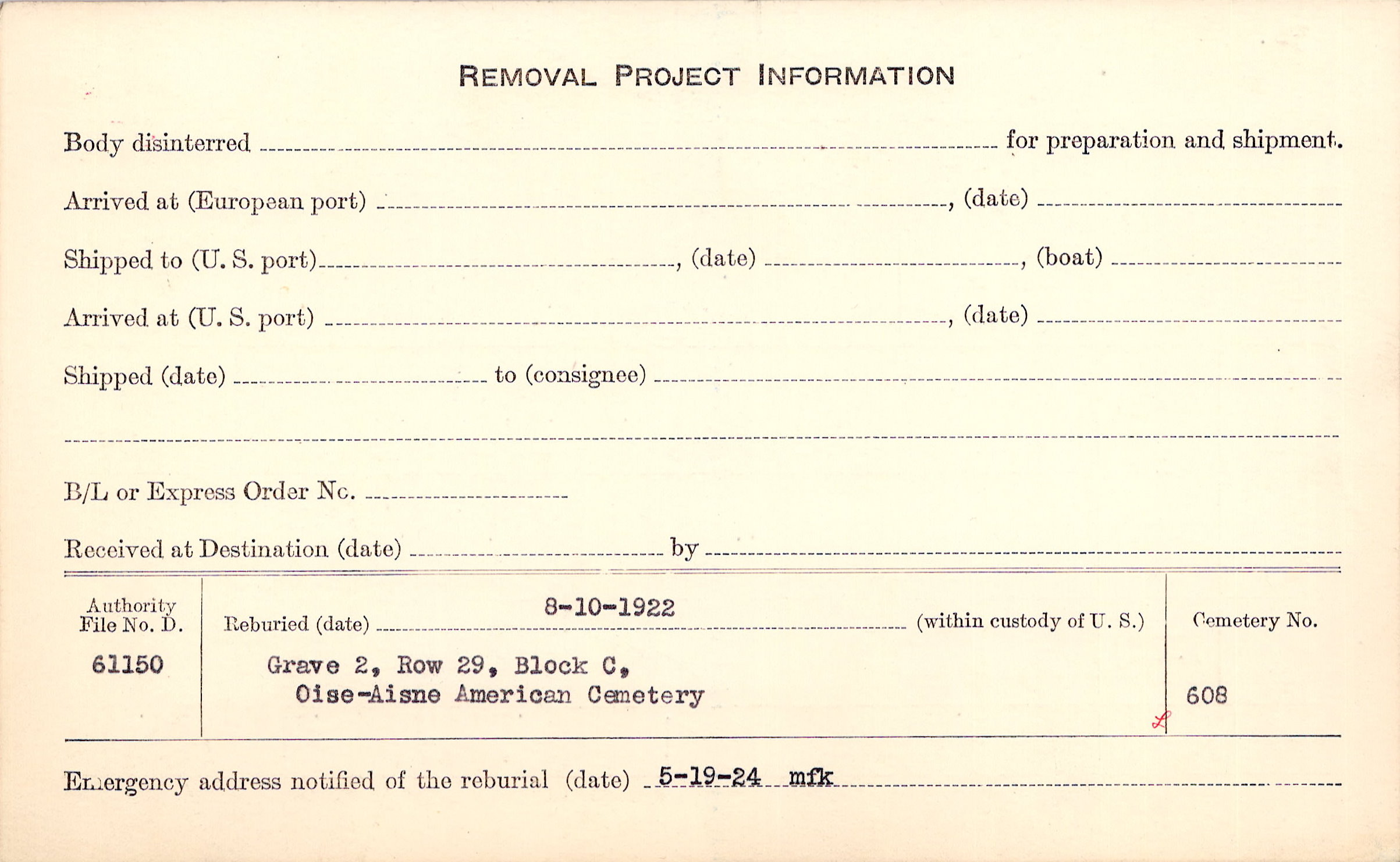 | Permanent Burial in Foreign Cemetery |