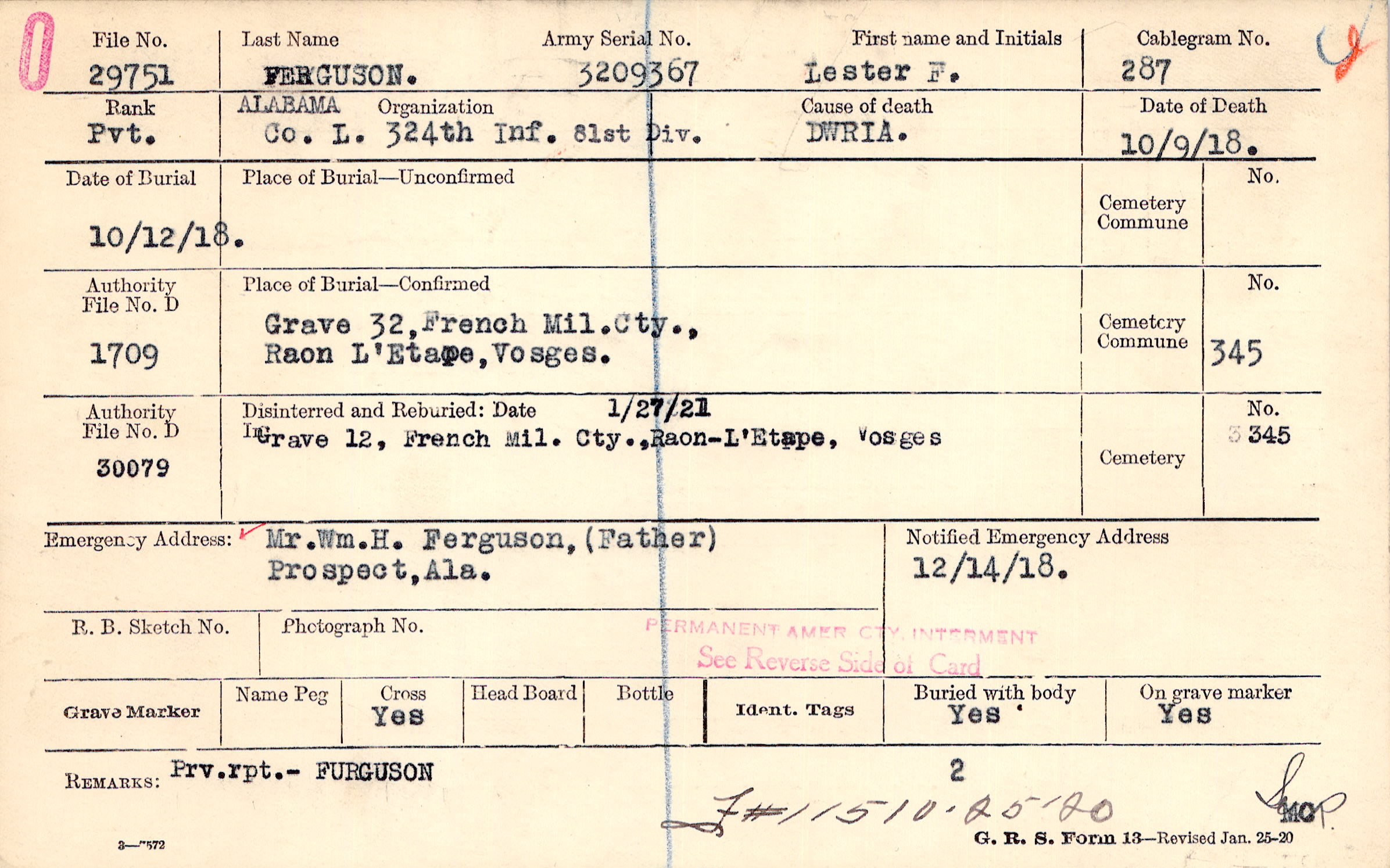 Mr. Wm. H. Ferguson, (Father), Prospect, Ala.