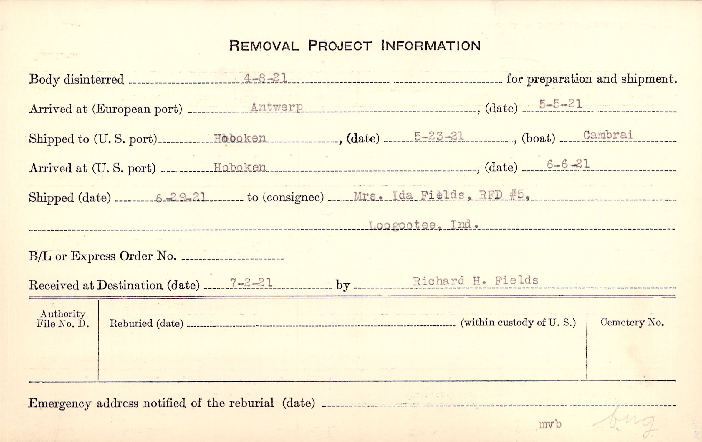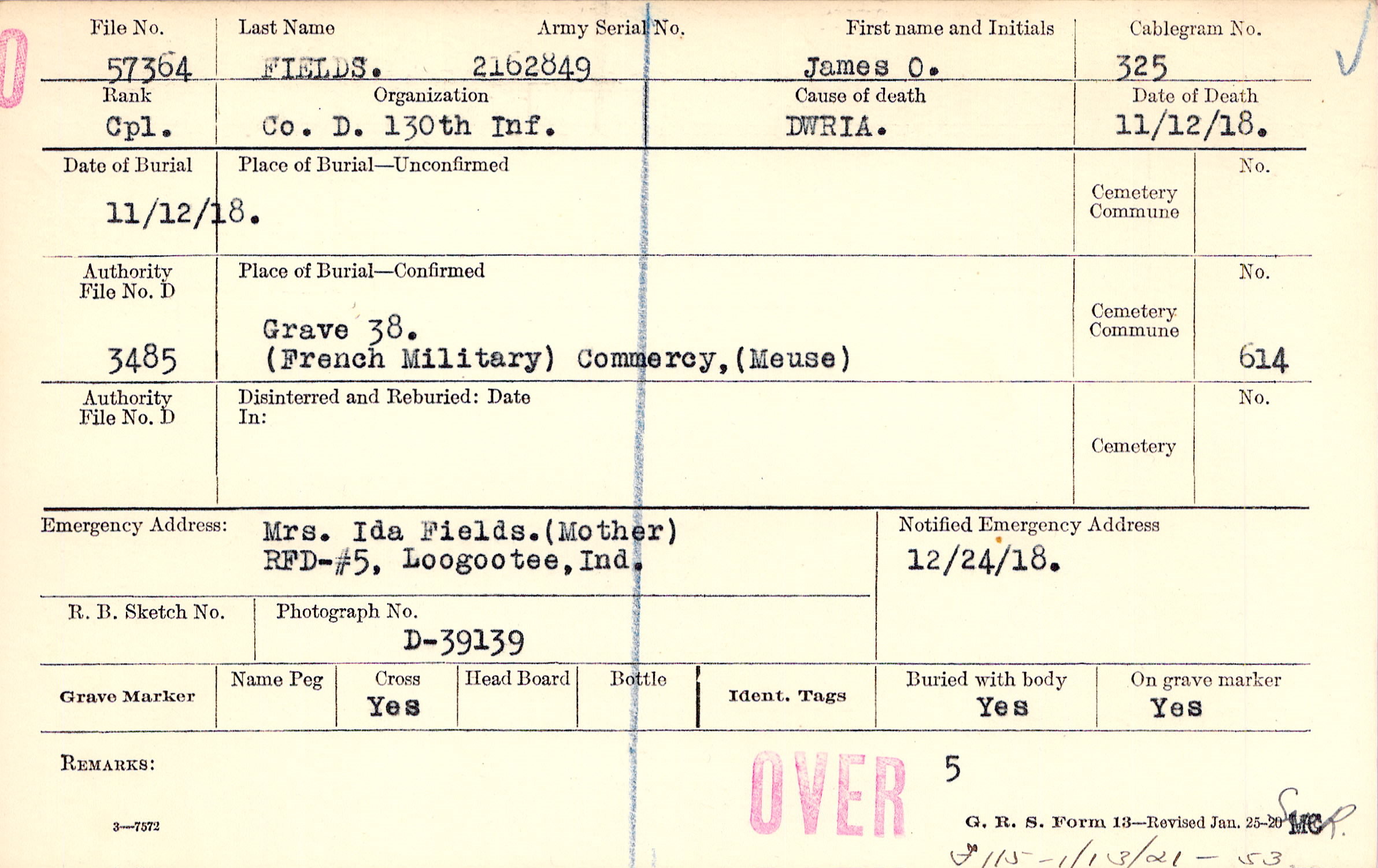 Mrs. Ida Fields. (Mother), RFD-#5, Loogootee, Ind.