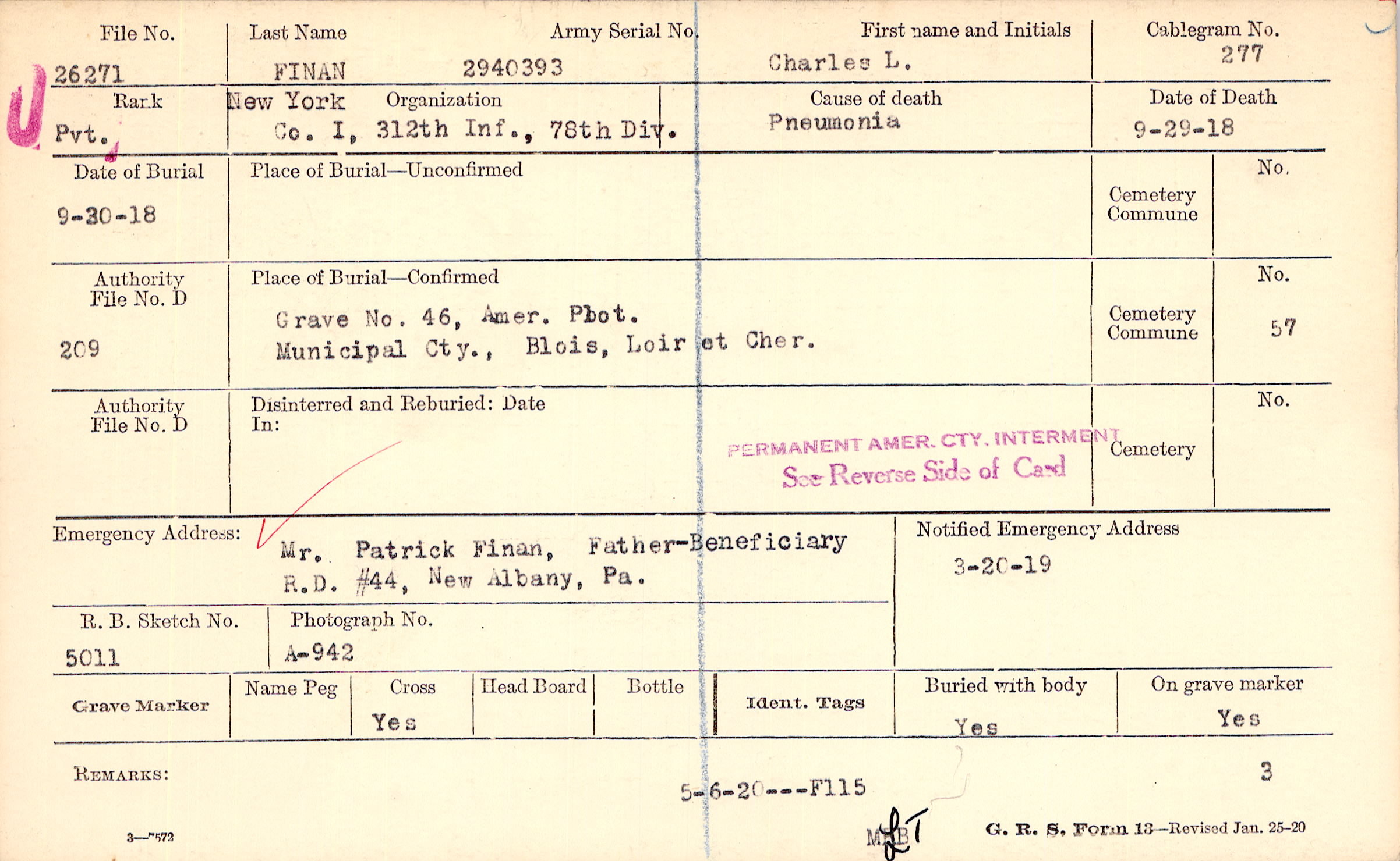 Grave 46, Amer. Plot, Municipal Cty., Blois, Loir et Cher