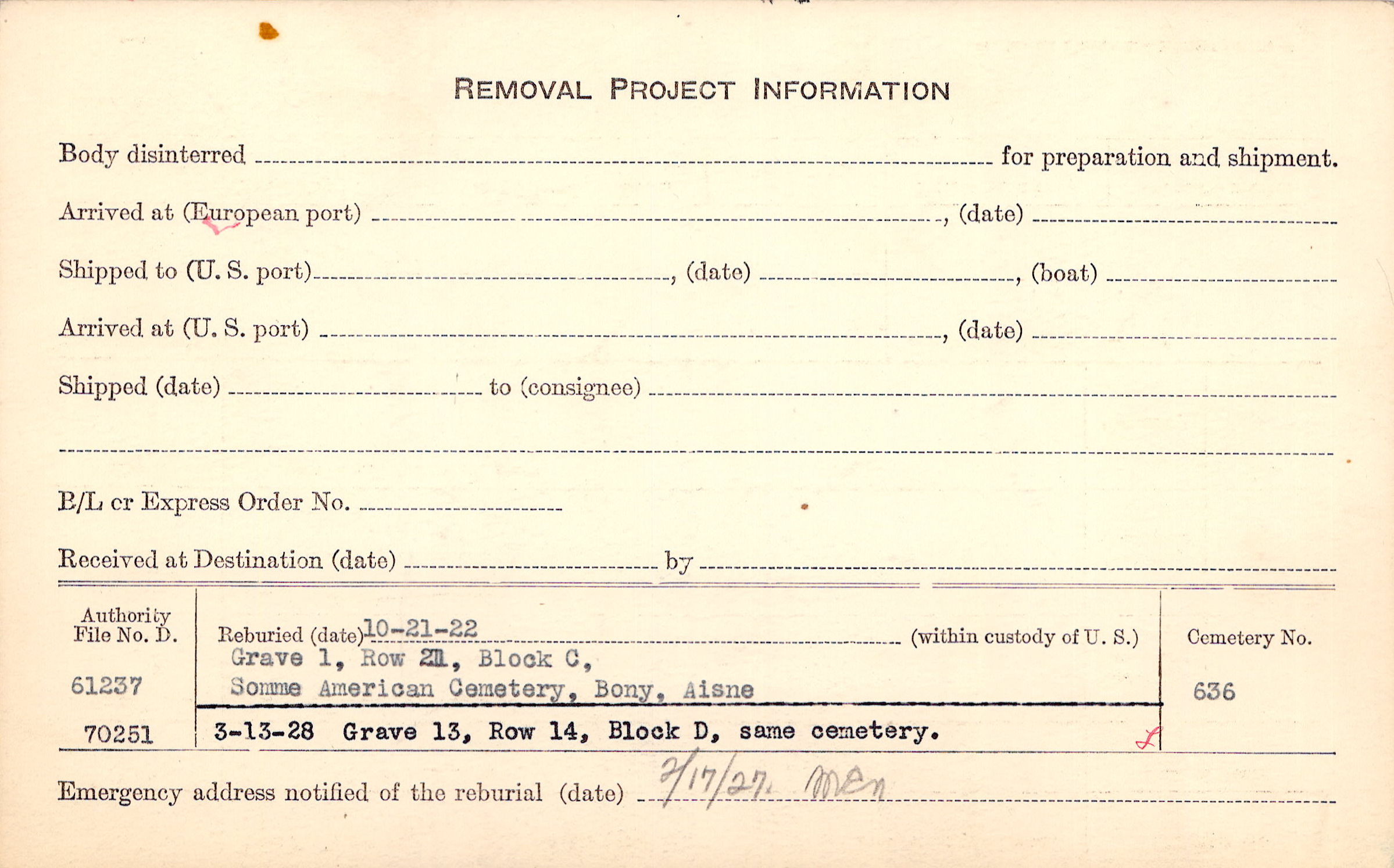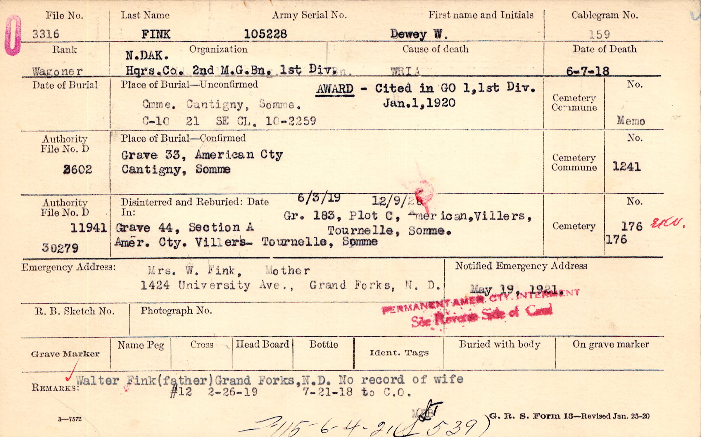 Walter Fink (father), Grand Forks, N.D. no record of wife 7-21-18 to C.O., #12 2-26-19, F115-6-4-21 (S-539)
