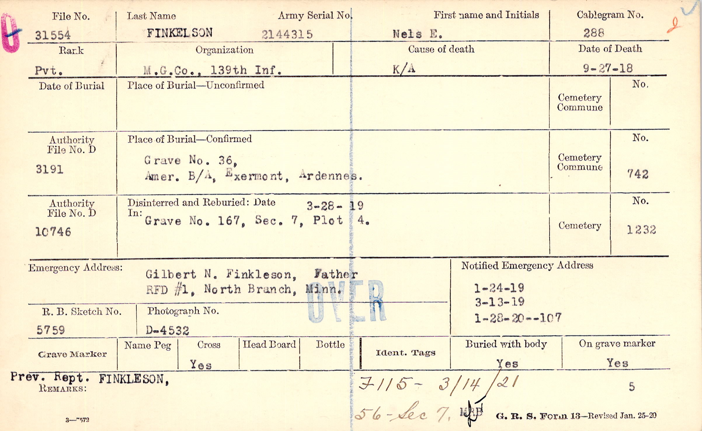Grave 167, Section 7, Plot 4, Argonne American Cemetery, Romagne-sous-Montfaucon, Meuse
