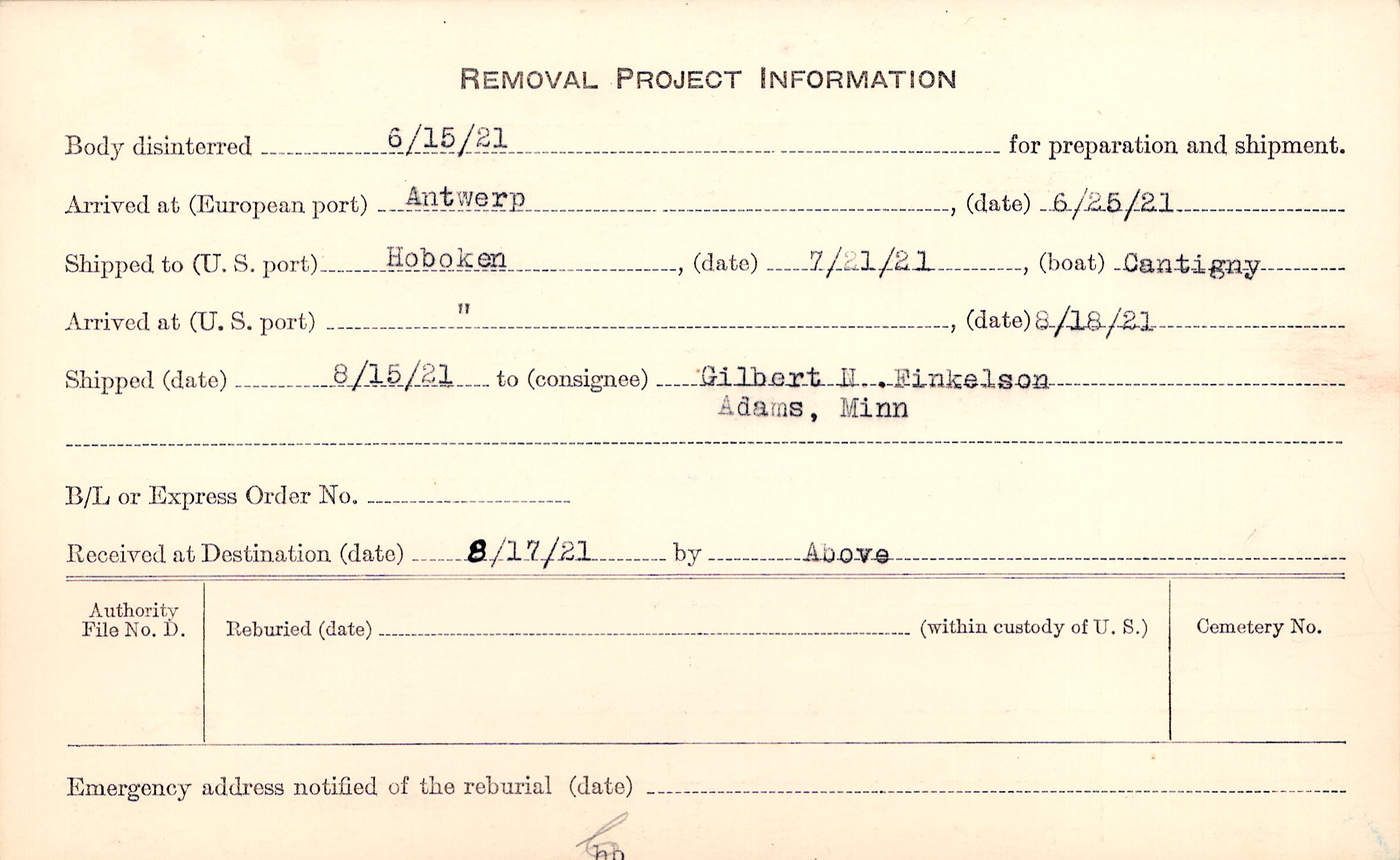Gilbert N. Finkleson, Father, RFD #1, North Branch, Minn.