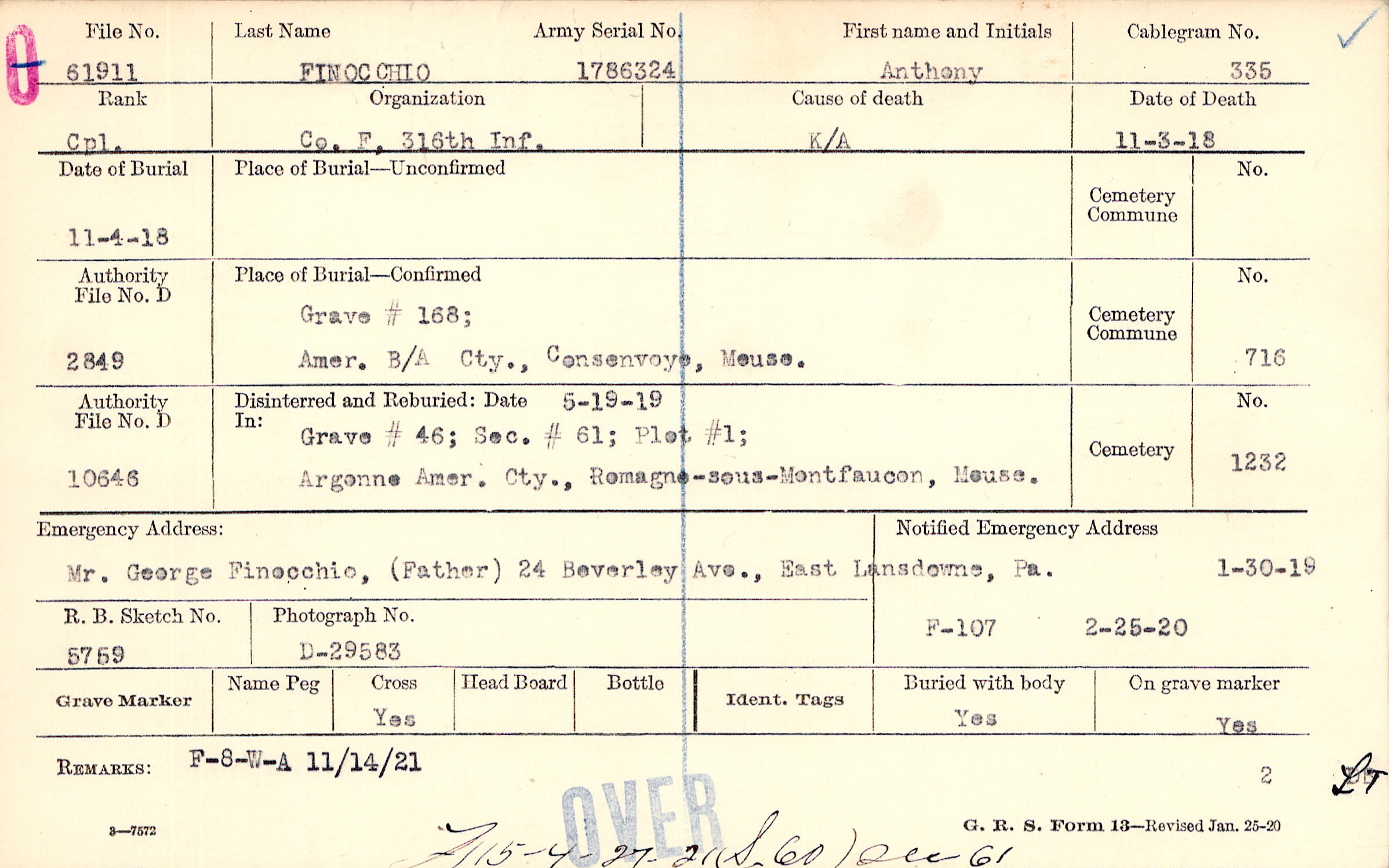 1/30/1919, Form 107: 2/25/1920