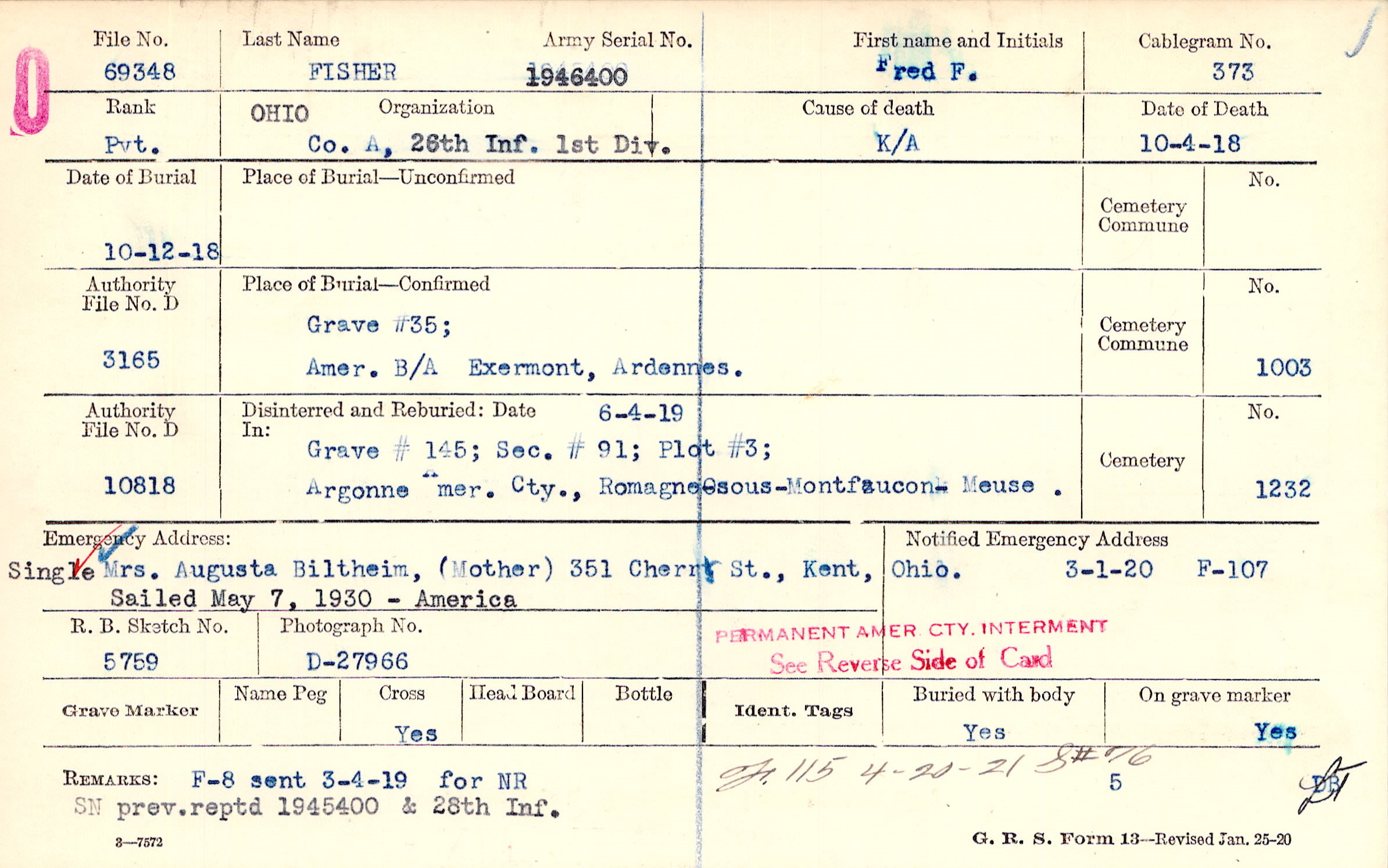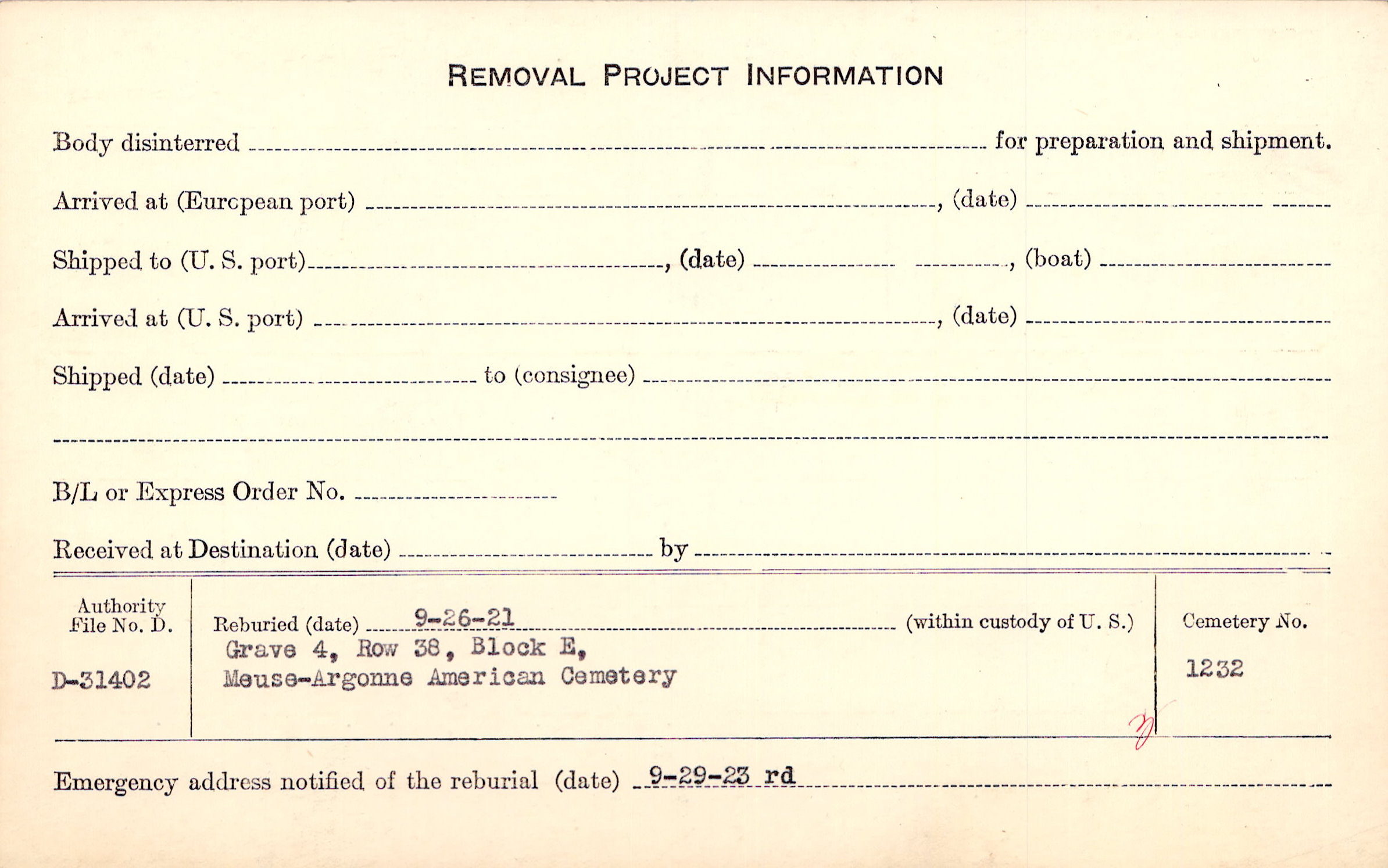 | Permanent Burial in Foreign Cemetery |