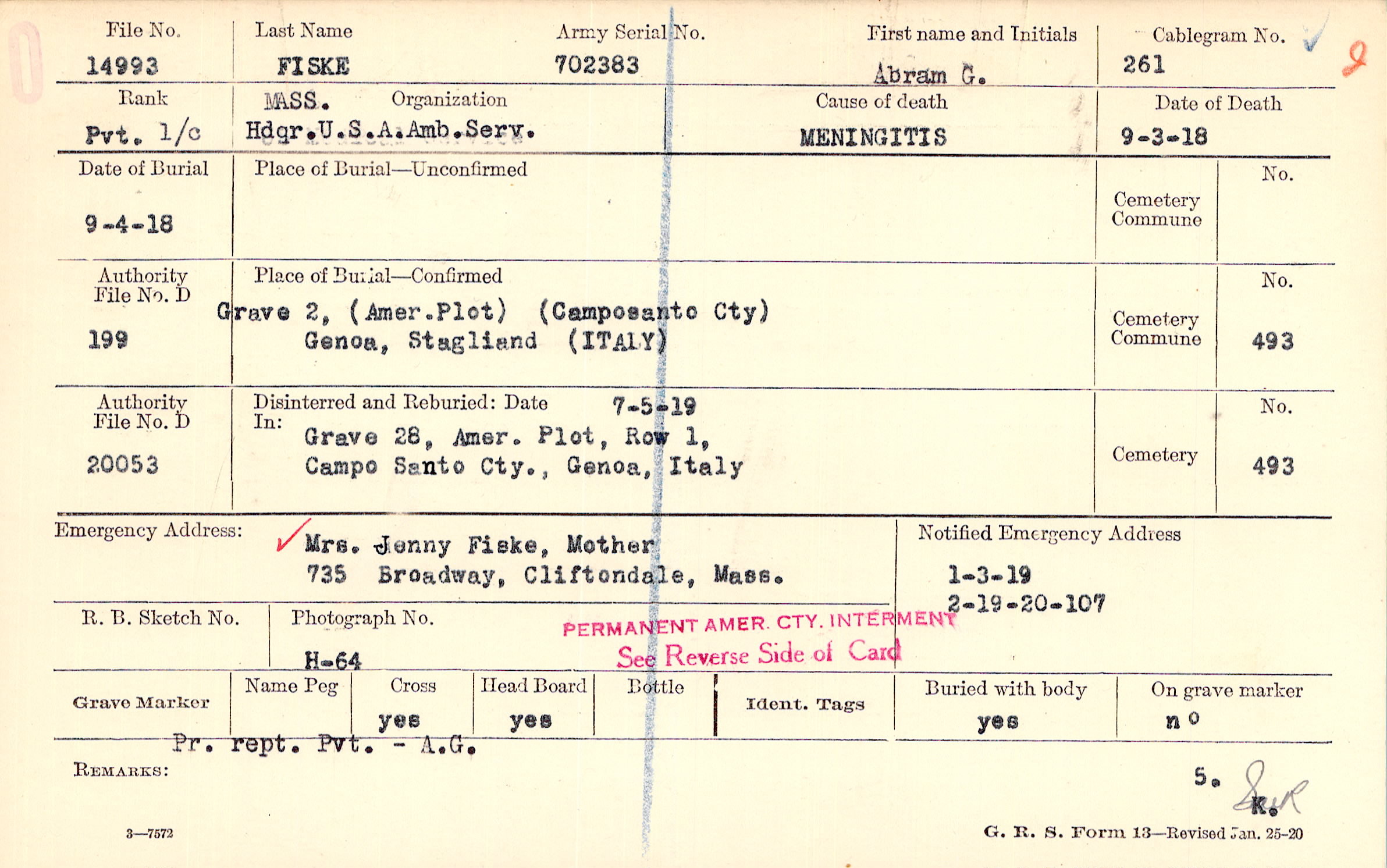 Grave 2, Amer. Plot, Campsanto Cty., Genoa, Stagliand, Italy.