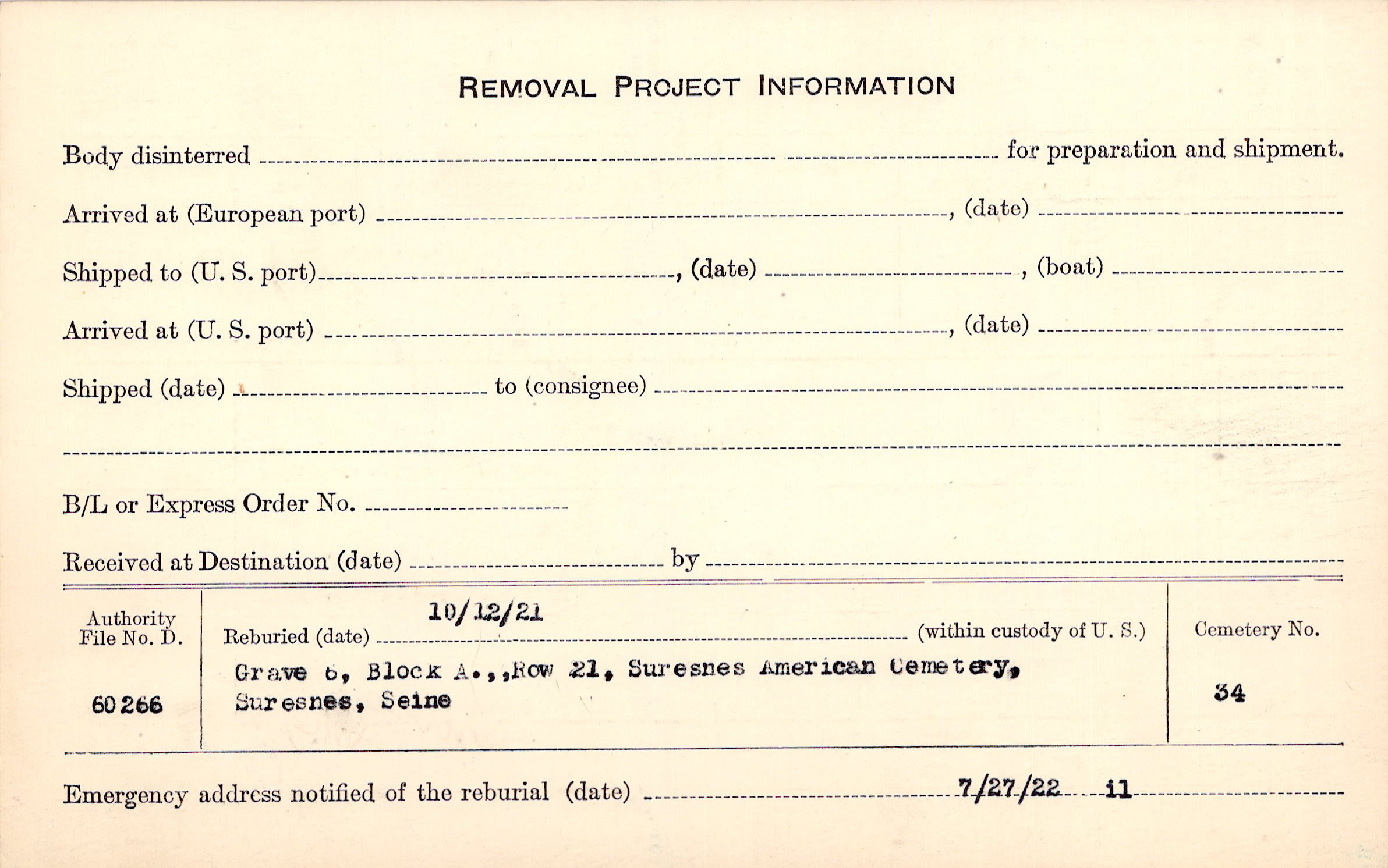 Grave 28, Row 1, Plot American, Campo Santo Cemetery, Genoa, Italy