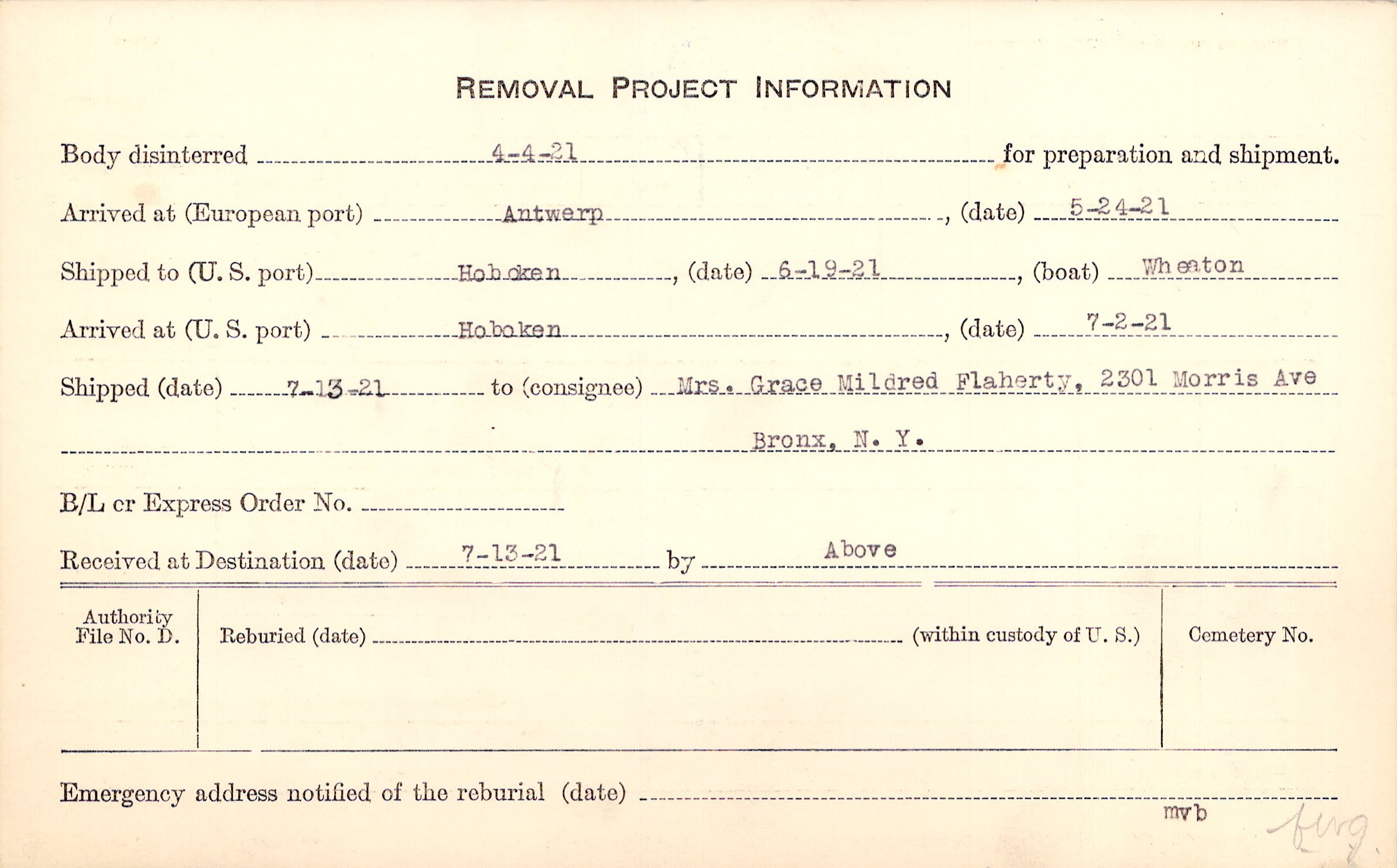 to Mrs. Grace Mildred Flaherty, 2301 Morris Ave., Bronx, N.Y.