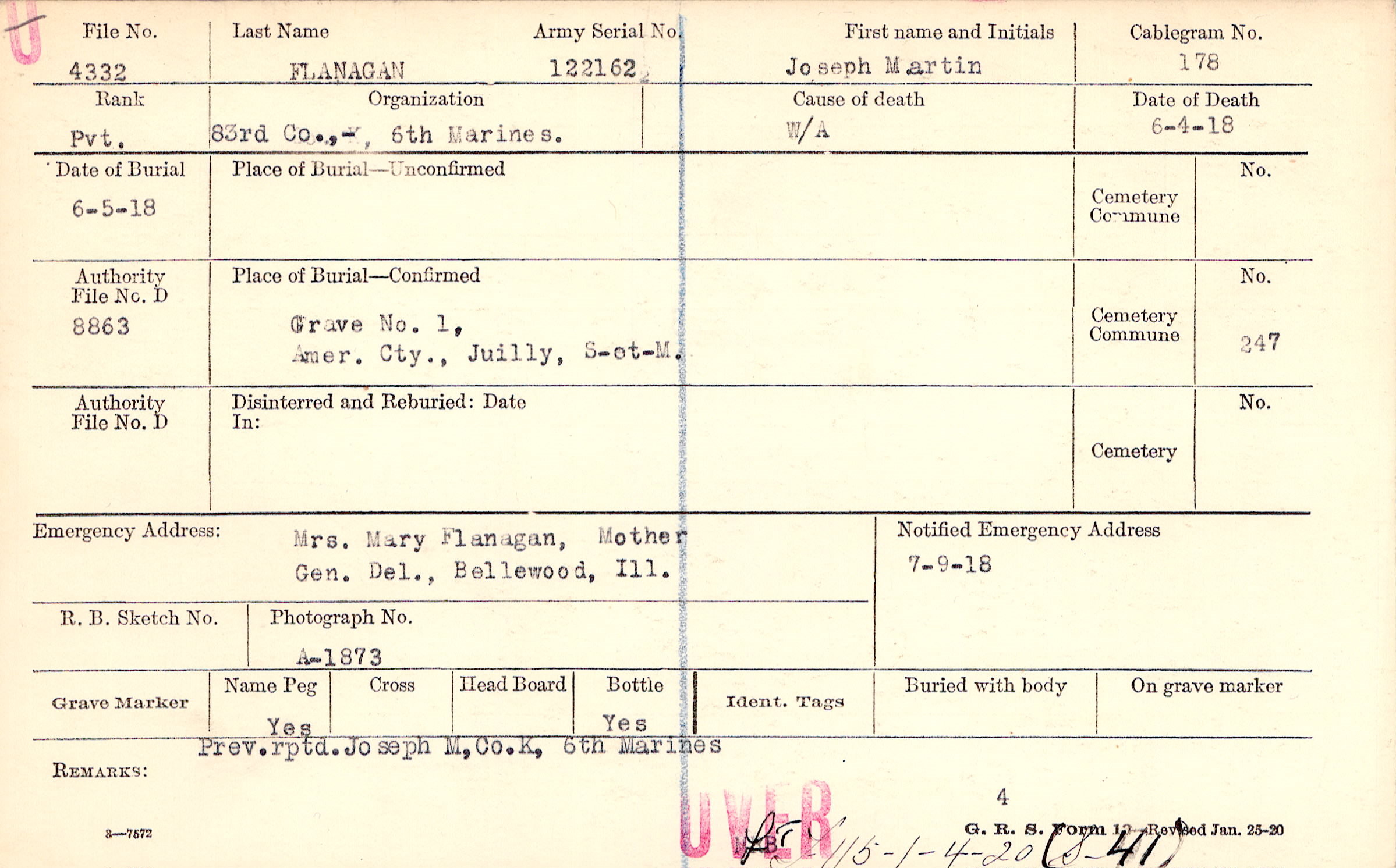 Prev. rptd. Joseph M, Co. K, 6th Marines, F115 - 1-4-20 (S-41)