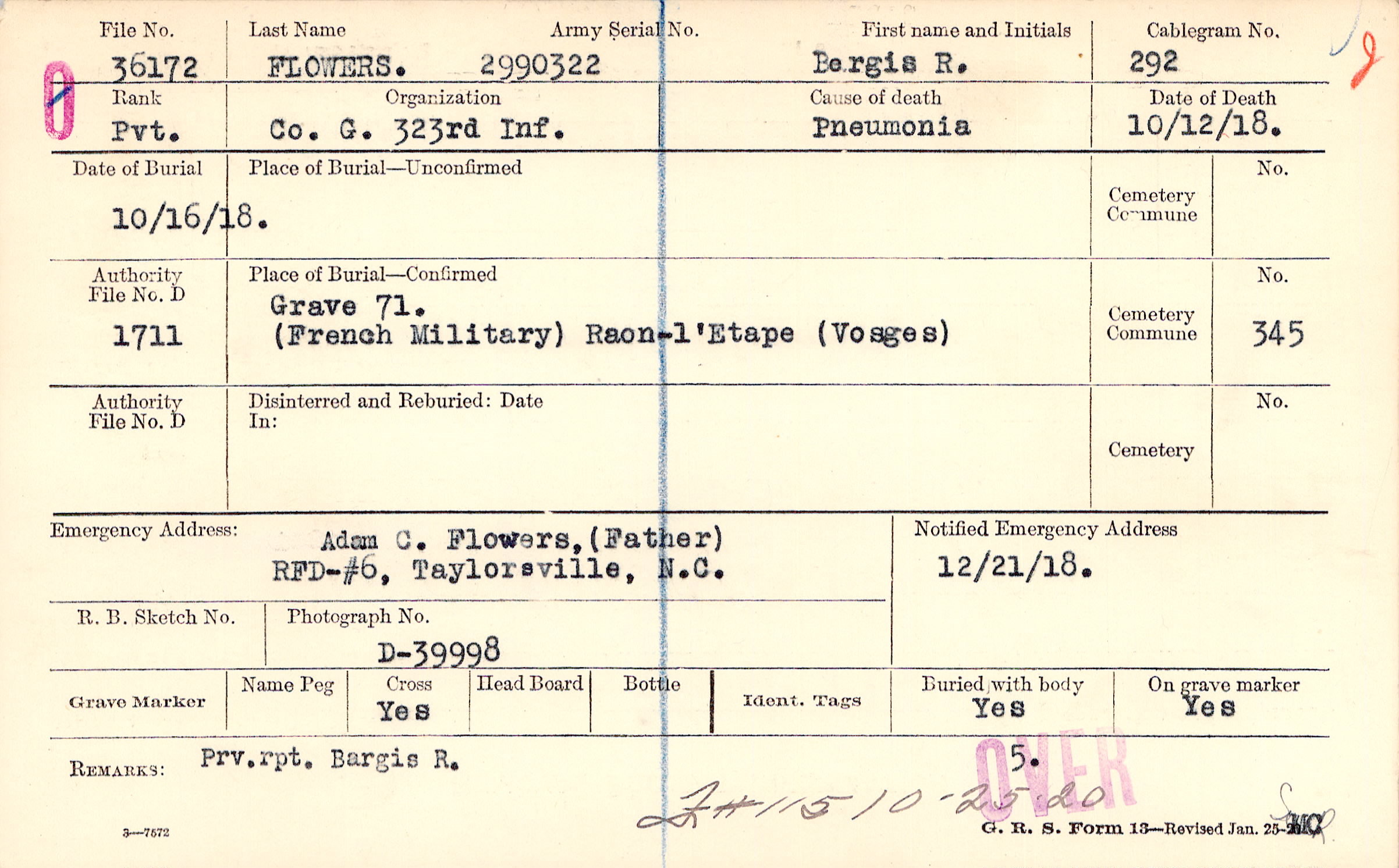 Adam C. Flowers, (Father), RFD-#6, Taylorsville, N.C.