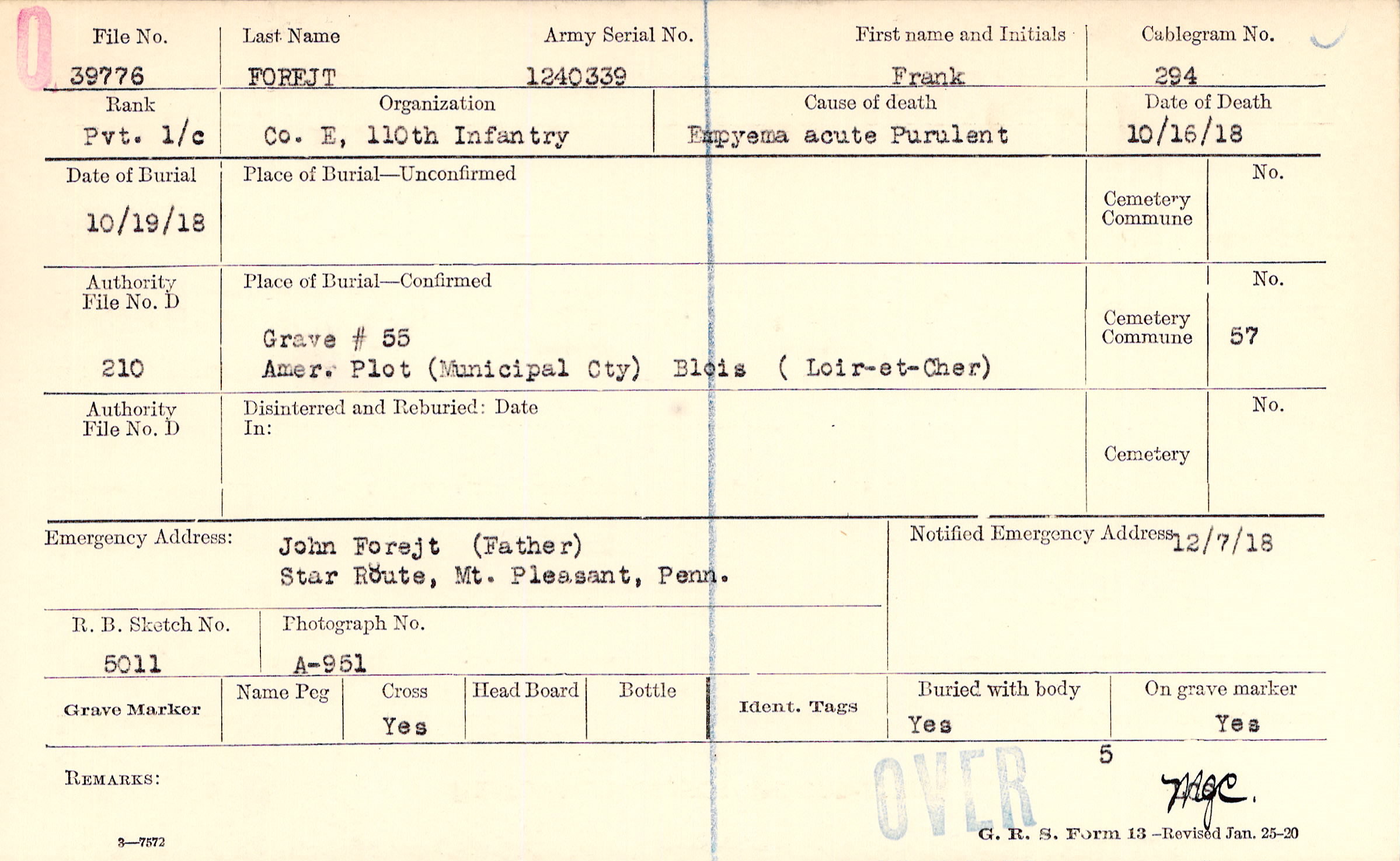 Grave #55, Amer. Plot, Municipal Cty., Blois, Loir-et-Cher