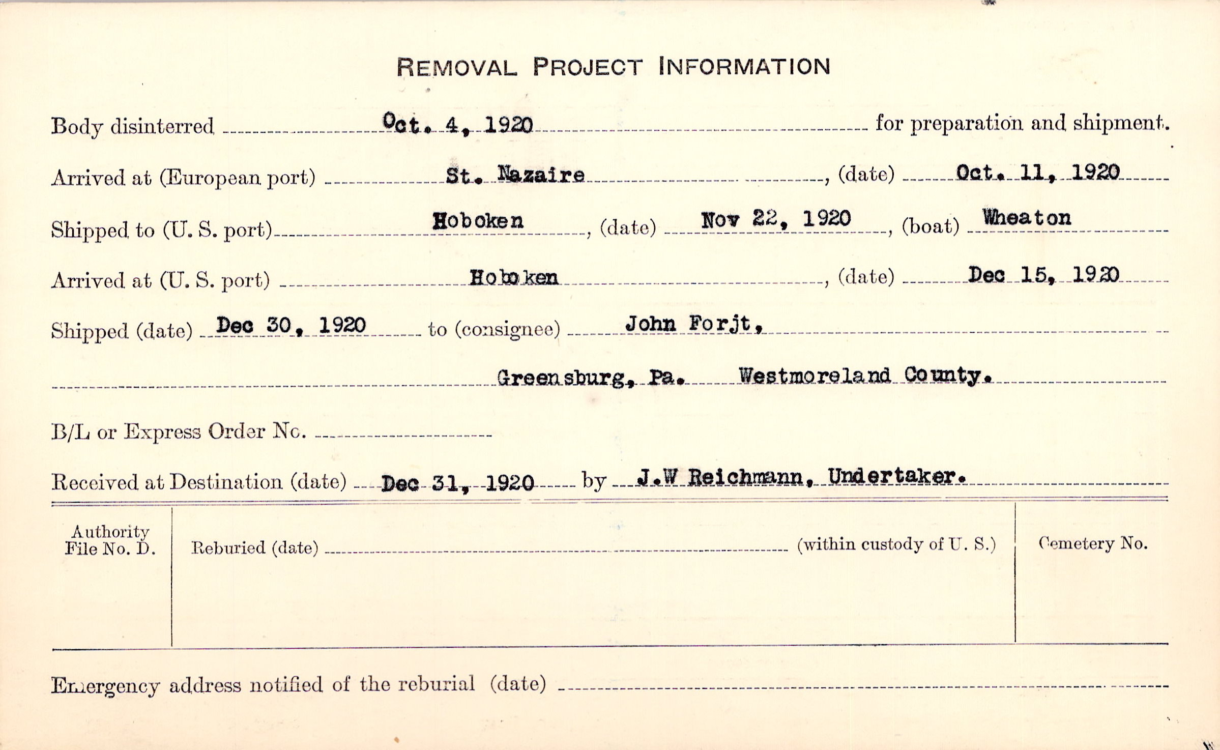 to John Forjt, Greensburg, Pa. Westmoreland County.