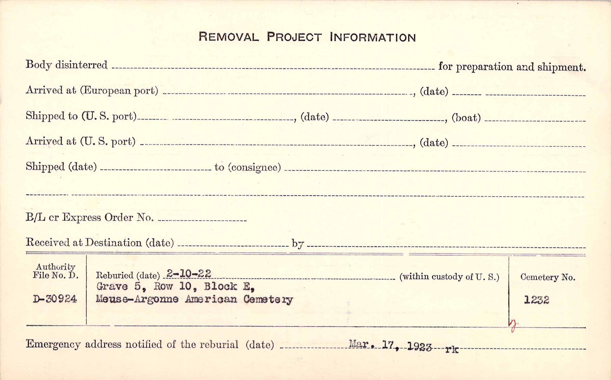 | Permanent Burial in Foreign Cemetery |