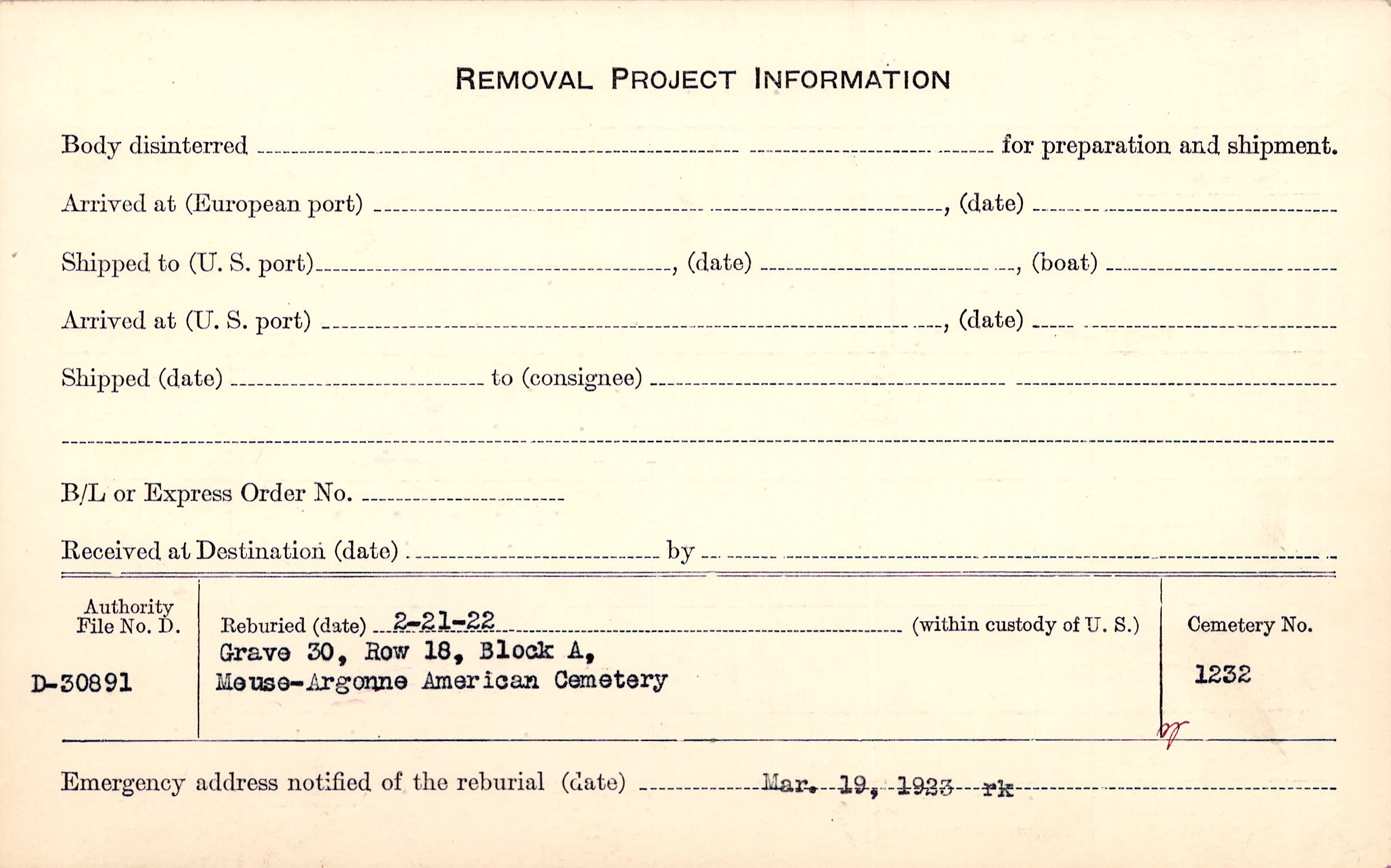 | Permanent Burial in Foreign Cemetery |