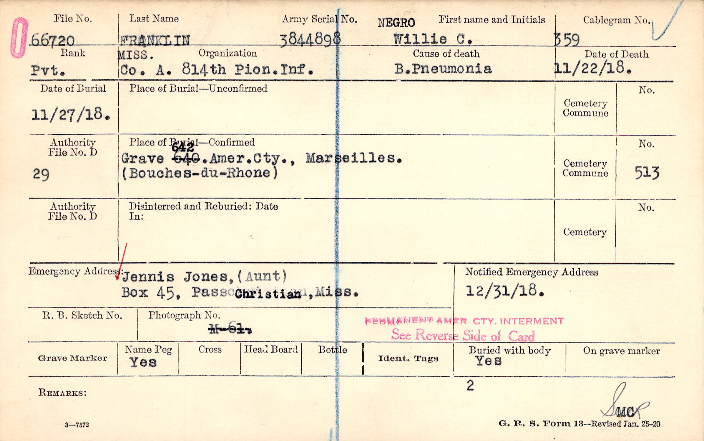 Grave 642. Amer. Cty., Marseilles. (Bouches-du-Rhone)
