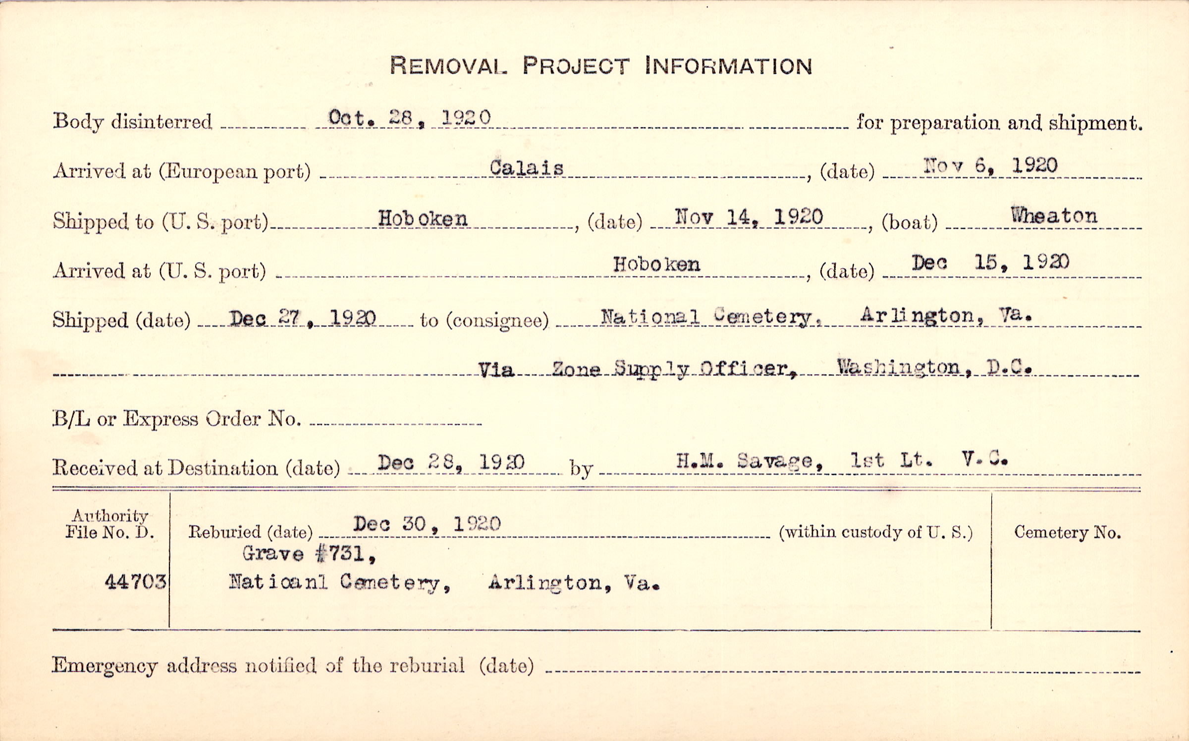 to National Cemetery, Arlington, Va., Via Zone Supply Officer, Washington, D.C.