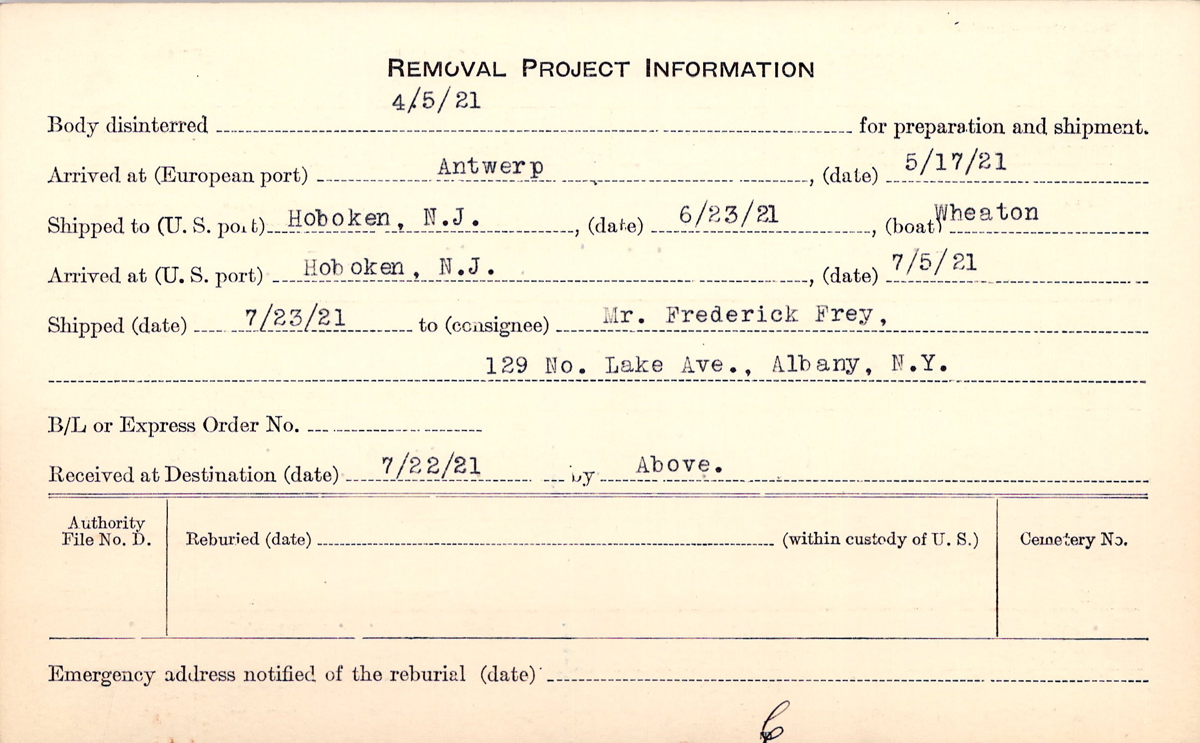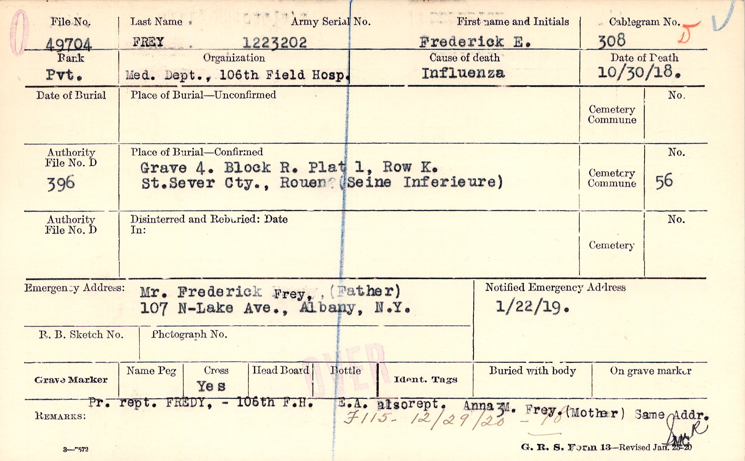 Mr. Frederick Frey, (Father), 107 N-Lake Ave., Albany, N.Y.